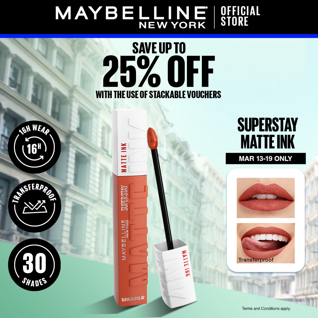Maybelline SuperStay Matte Ink Liquid Lipstick 16HR Long-Lasting, Transferproof, High Pigment