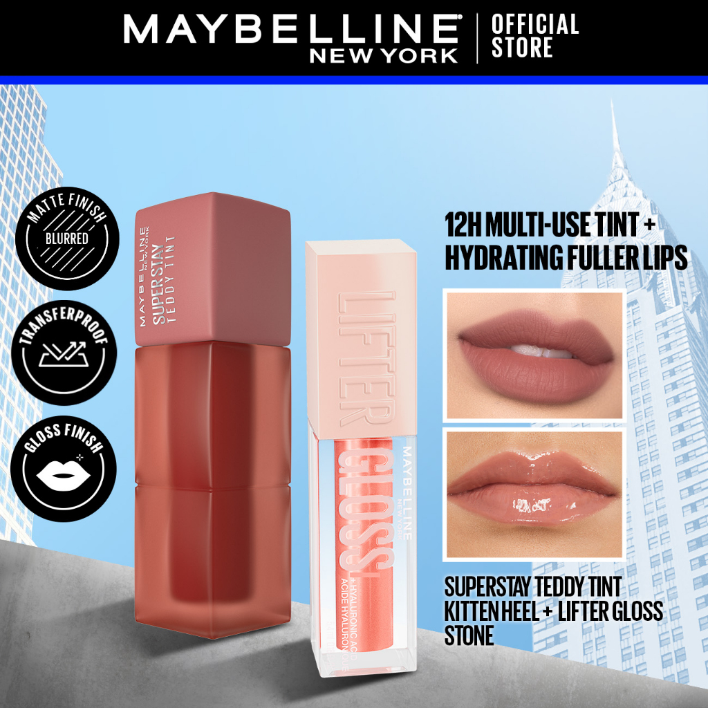 Maybelline Superstay Teddy Tint Kitten Heel 12H Multi-Use Tint & Lifter Gloss Stone Hyaluronic Acid