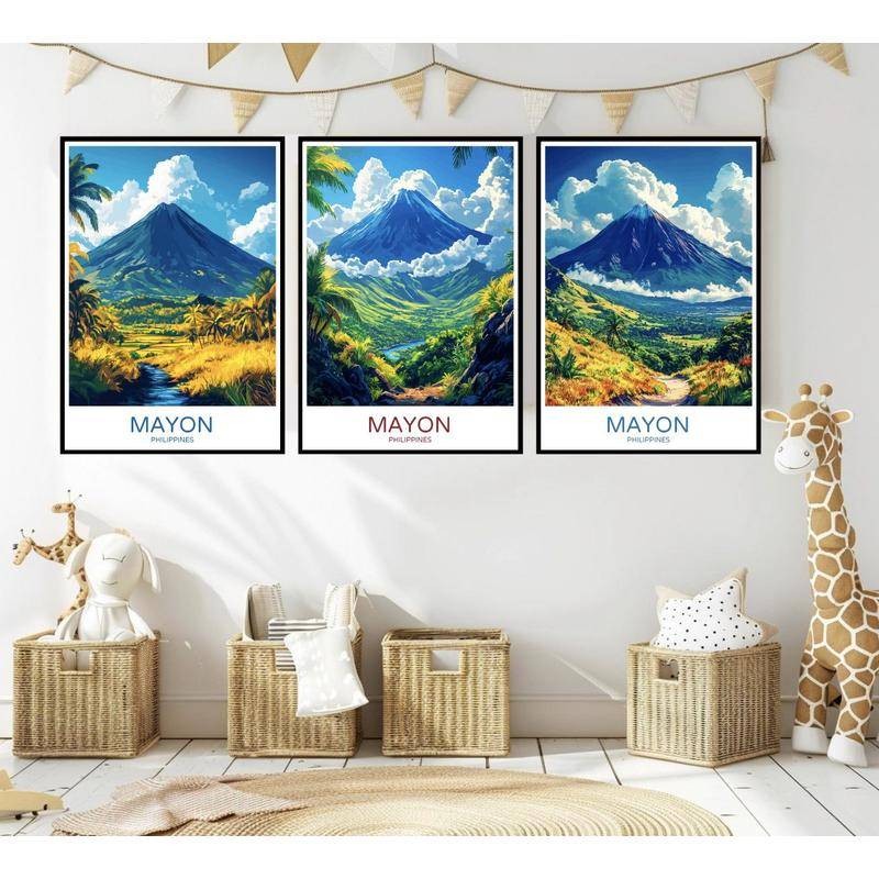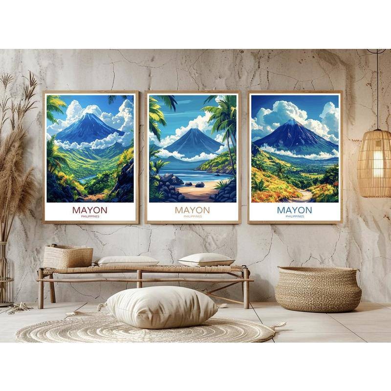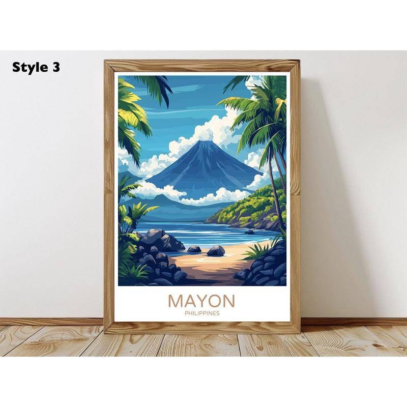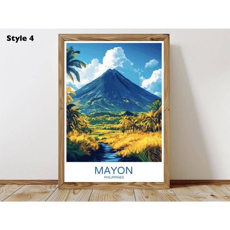 Mayon Volcano Philippines Travel Poster Digital Print Mount Mayon Albay Bicol Canvas Vintage Wall Art Illustration Gift Home Room Decor , Canvas Wall Art Print Home Decor, A02