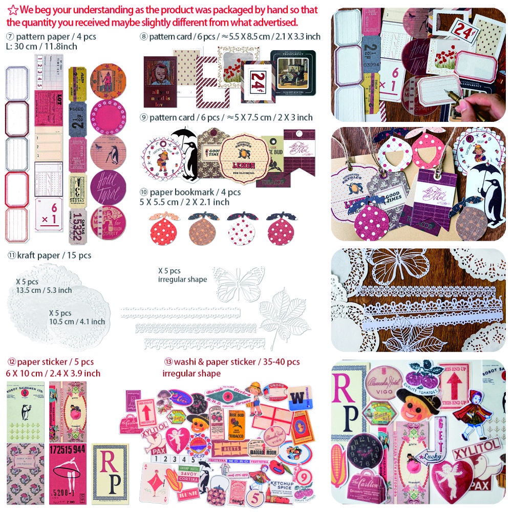 Mayplous Vintage Pattern Paper Set Scrapbook Paper Decorative Paper Kraft Paper with Stickers Bookmarks Card for Diary Journal Card Making Paper Craft DIY Cutting (Tea)