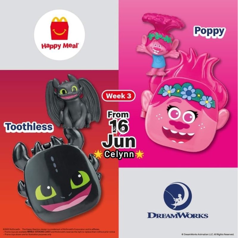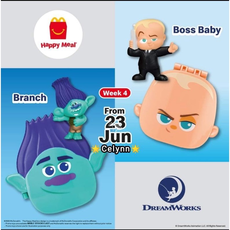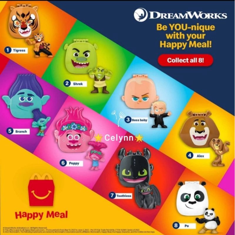 McDonald's Mcdonalds Mekdi McD Happy Meal Toy Dreamworks Po Shrek Tigress Alex Toothless Poppy Branch Boss Baby 2022