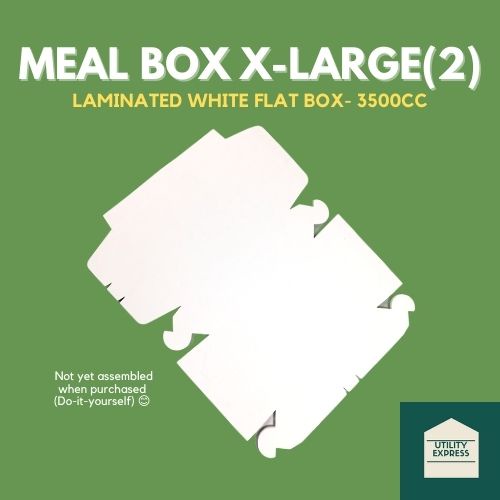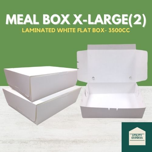 Meal Box X-Large (2) / Lunch Box Big 3500cc [ Laminated Flat White ] (25/50/75/100pcs) Flat Box