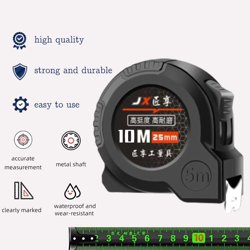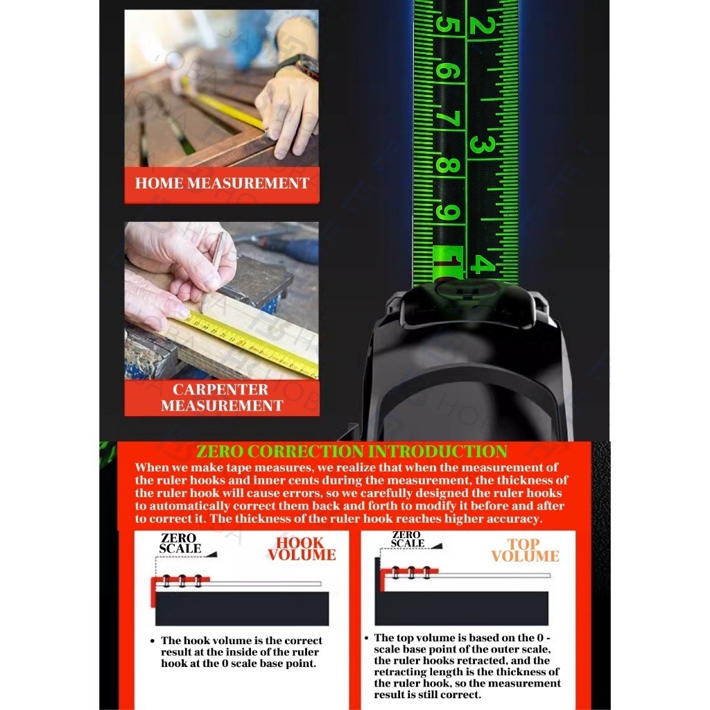 GROLEO 10M Steel Measuring Tape Fluorescerous Metro Industrial Auto Lock Steel Tape Measure