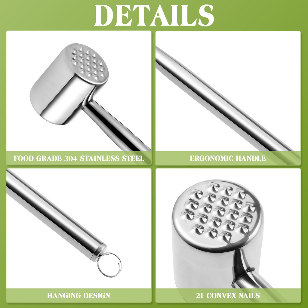 Meat Tenderizer Hammer 304 Stainless Steel Double-sided Tender Meat Hammer Beef Steak Mallet Hammer