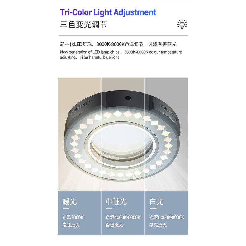 Mechanic LS3 Microscope Ring Lamp 7W Light Source LED Three-color Multi-level Brightness Adjustment Original