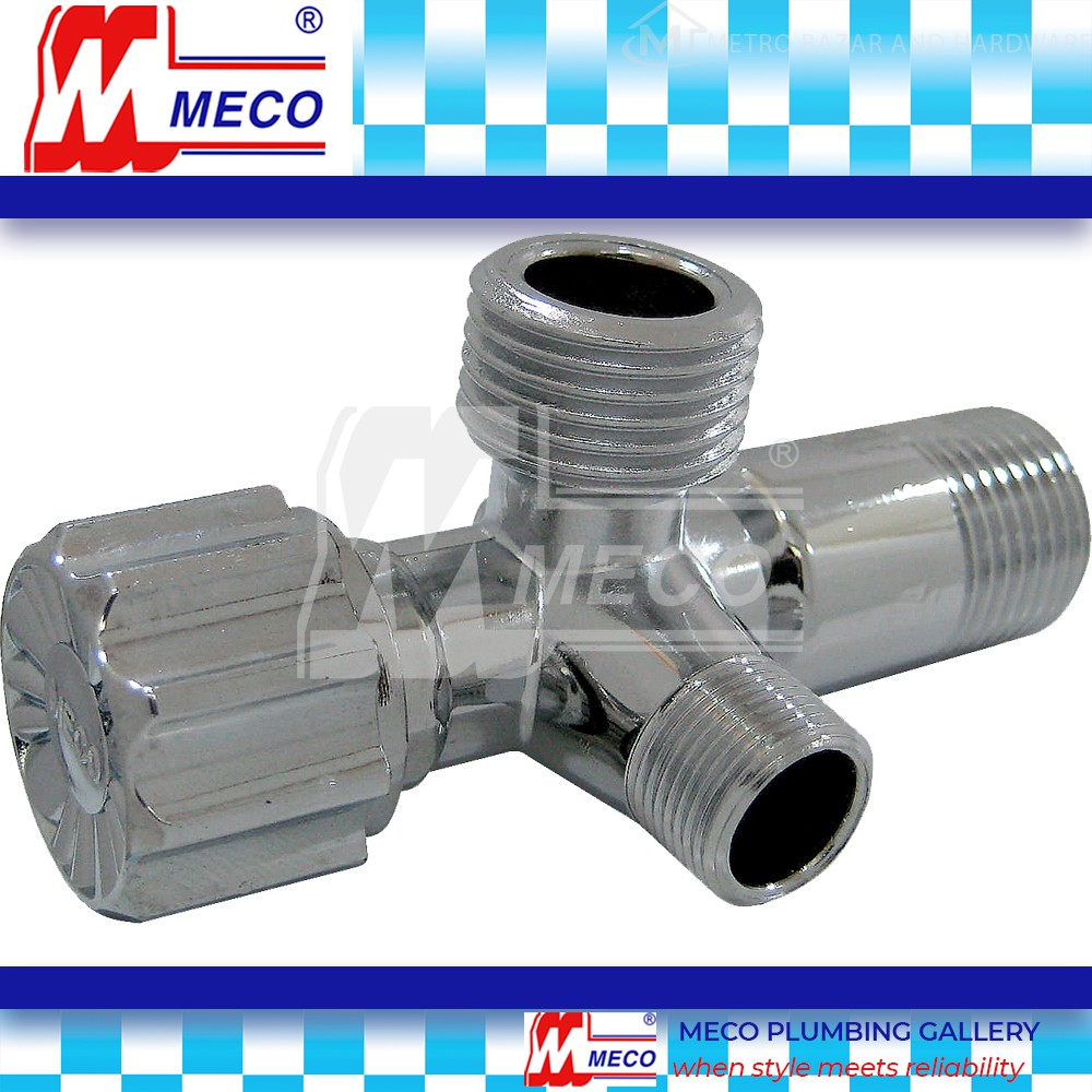 Meco 3-way Universal Angle Valve with Double Threaded Inlet 1/4"x1/2"x1/2" #017