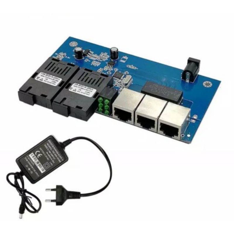 Meda Converter 2 port fiber optic Single mode A And B-3 port rj45-switch Converter