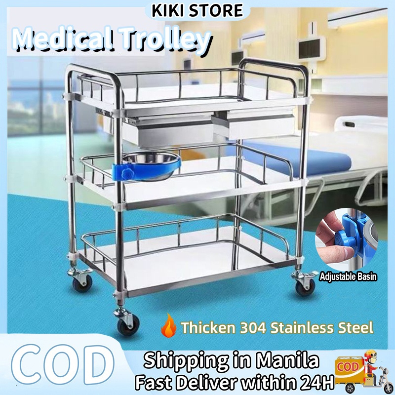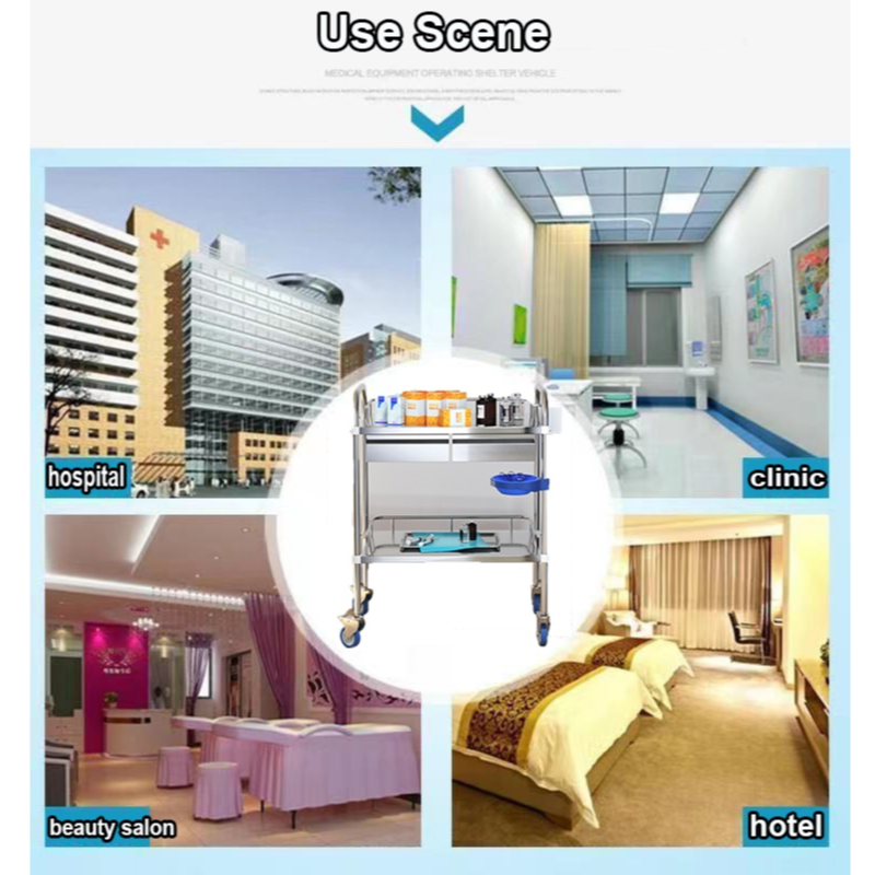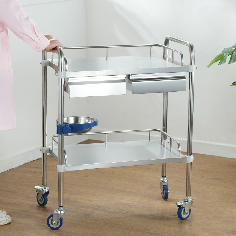 Medical Trolley Cart Stainless Steel Rolling Utility Cart Medication Cart for Clinic Hospital Beauty Salon Medicine Push Cart with Wheels 2 Drawers
