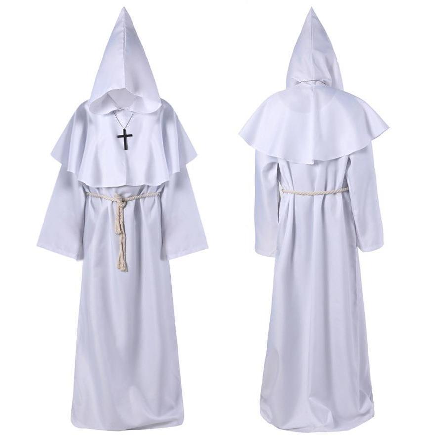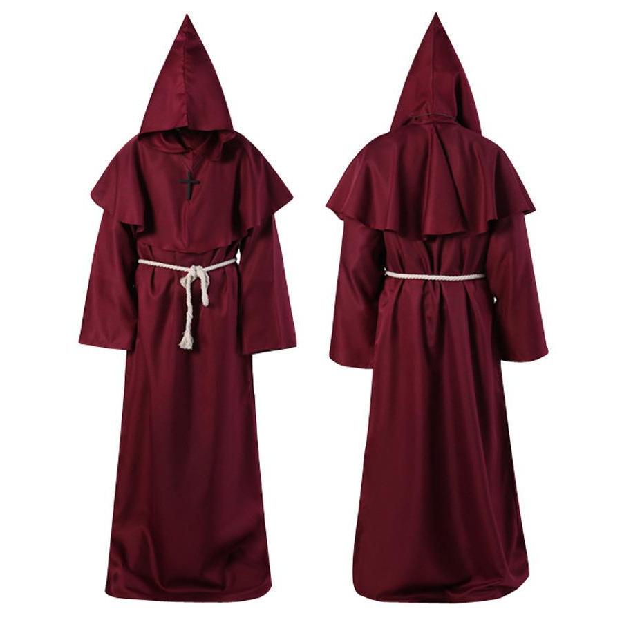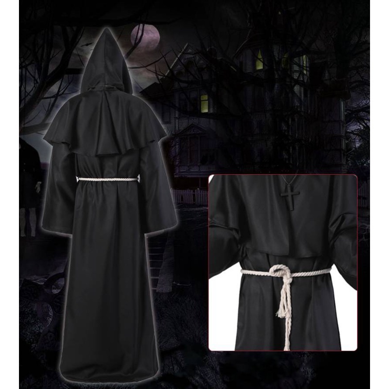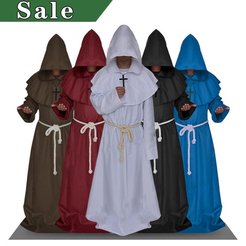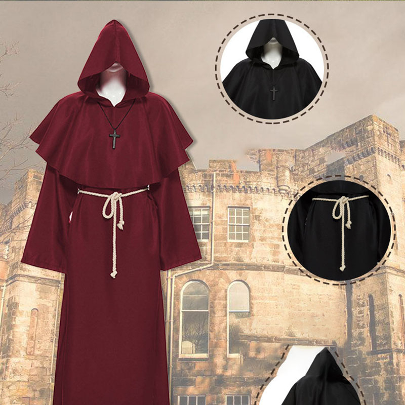 Medieval Monks Hooded Priest Robe Wizard Halloween Cosplay Costume Adult for Men