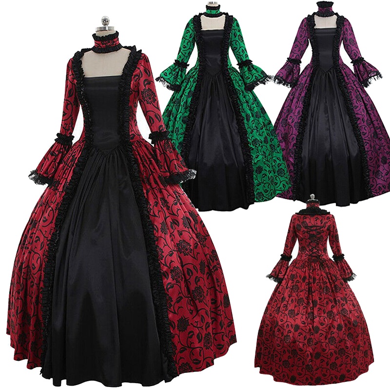 Medieval Renaissance Queen Ball Gown Womens Vintage Gothic Victorian Renaissance Witch Maxi Dress Cosplay Costume Halloween