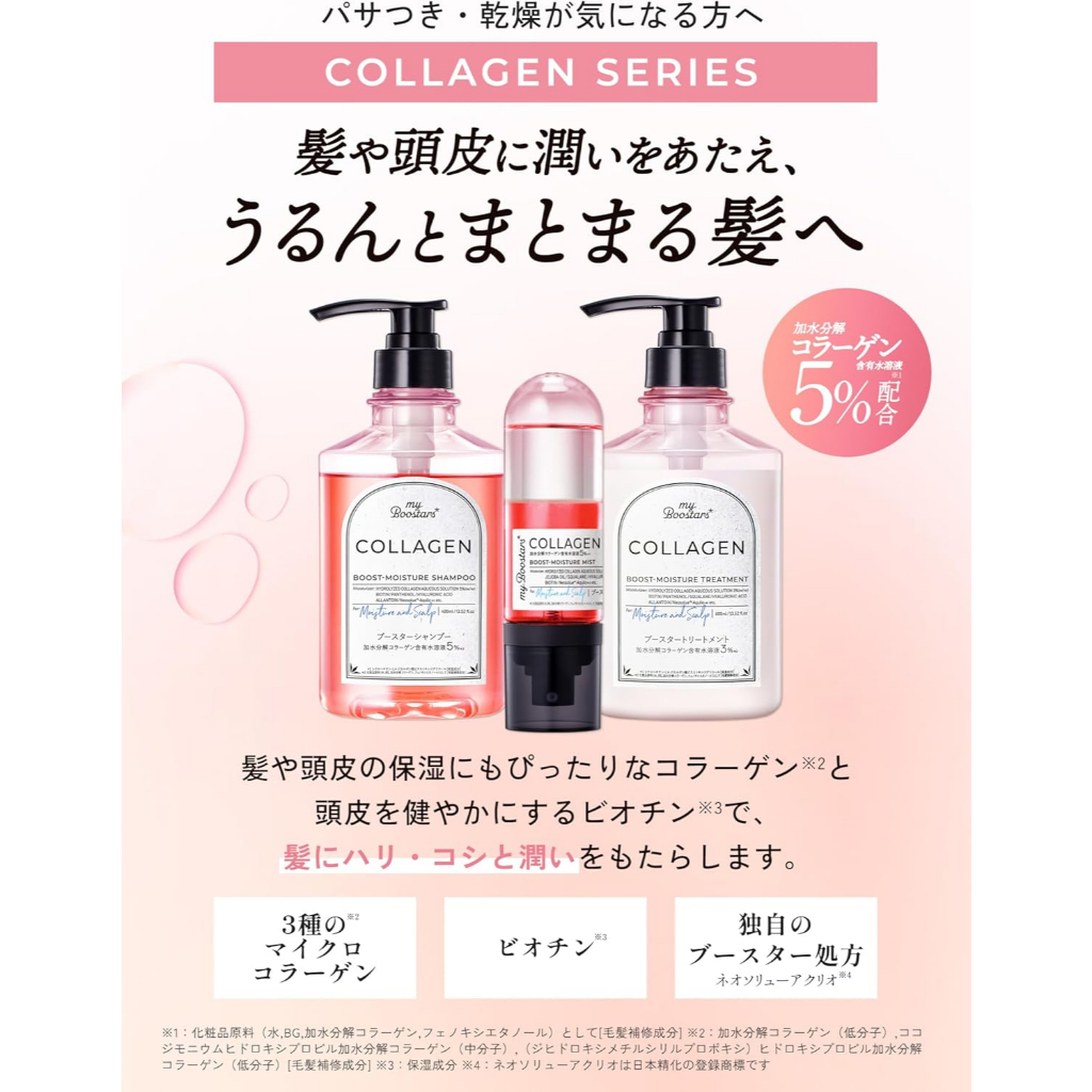 myBoostars [Collagen] Boost-Moisture Shampoo & Treatment & Booster Mist [Scalp & Moisture]