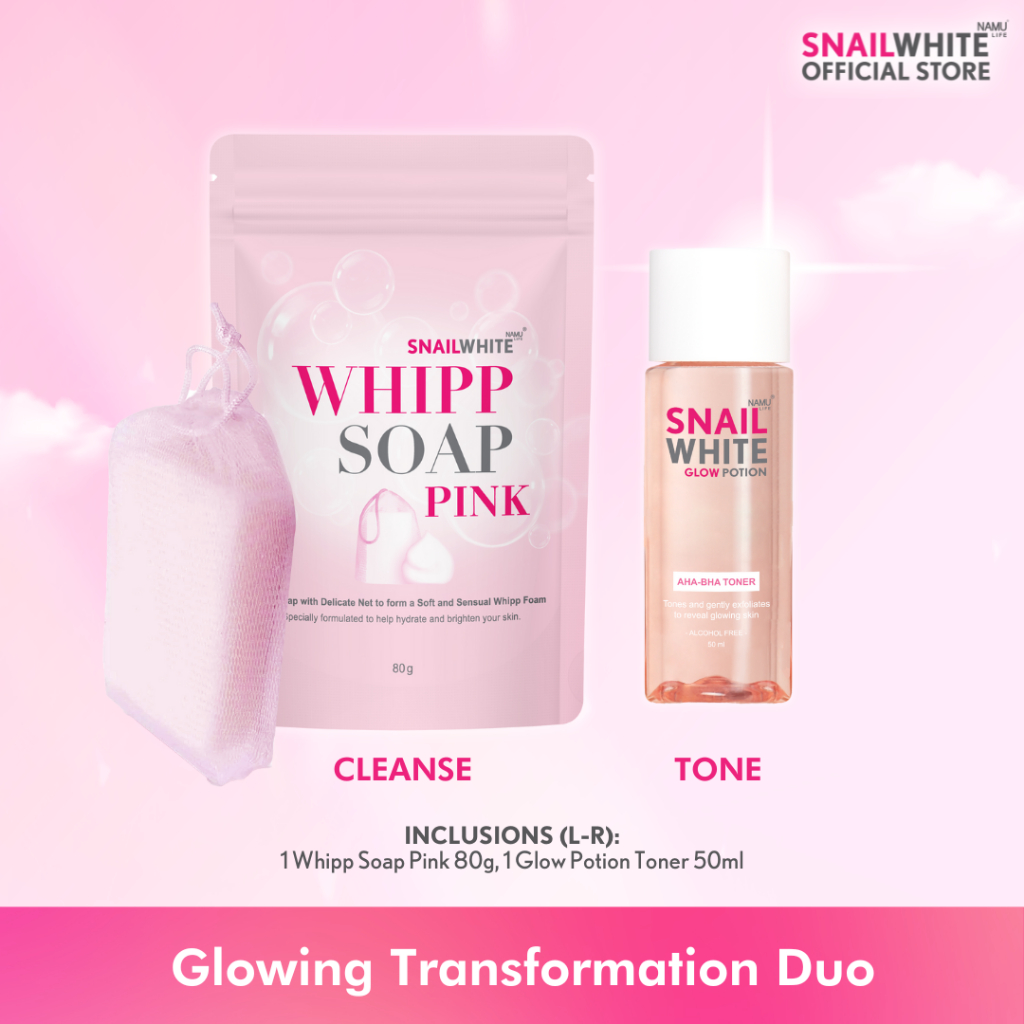 SNAILWHITE Glowing Transformation Duo (Whipp Soap Pink 80g, Glow Potion Toner 50ml)