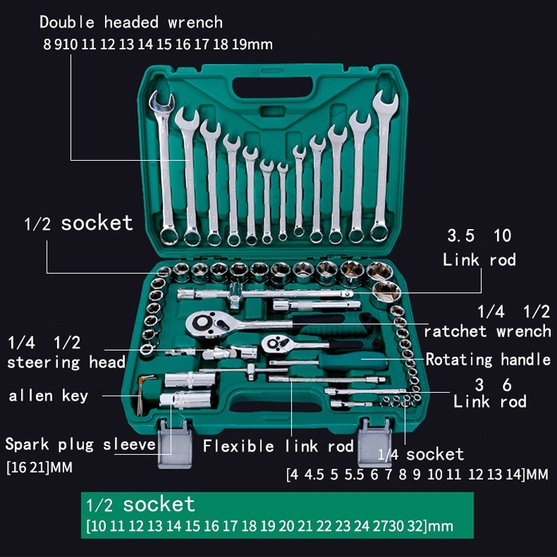 61 PCS Automotive Repair Tools Set for Motorcycle/Car 1/2 Socket Torque Ratchet Wrench Complete Hand Tool