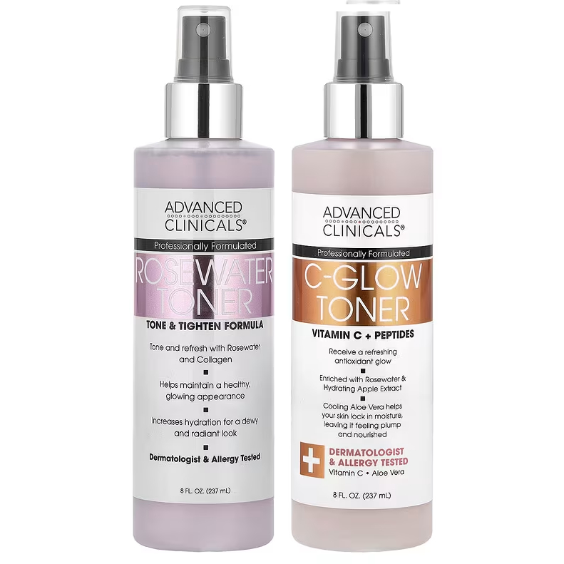 Advanced Clinicals Rosewater Toner Tone & Tighten Formula / C-Glow Toner, Vitamin C + Peptides