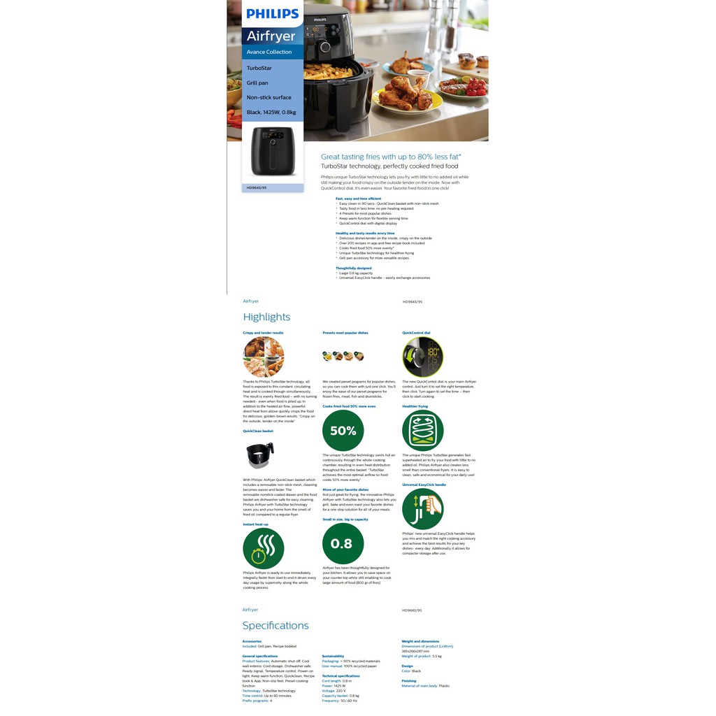 PHILIPS Avance Collection Air Fryer HD9643/95 2.2L (BLACK)