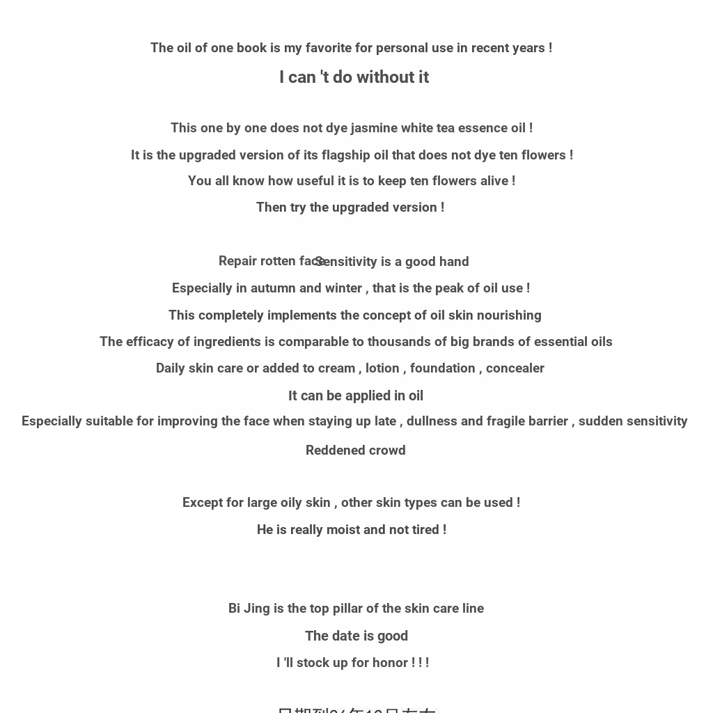 Discover the Book without Dyeing Jasmine White Tea Skin Revitalizing Repair Essence Oil 15ml with Oil Nourishing Skin