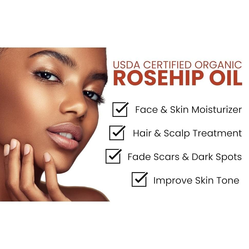 Organic Rosehip Seed Oil | 100% Pure, Cold-Pressed, Unrefined | USDA Certified Organic | Glass Bottle with Glass Dropper | For Face, Skin & Hair - 1 Fl Oz