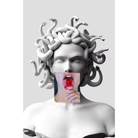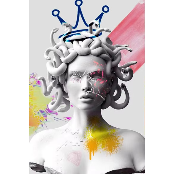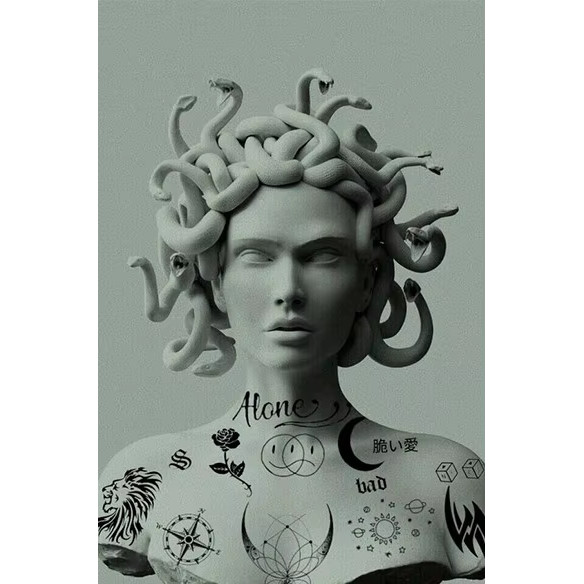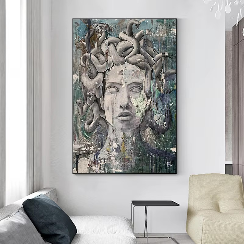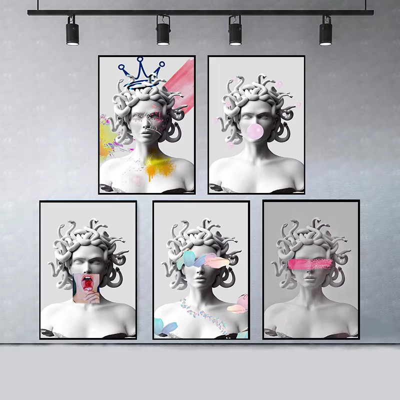 Medusa Sculpture Canvas Painting Wall Art Graffiti Greek Mythology Gorgo Statue Poster Prints For Living Room Home Decor