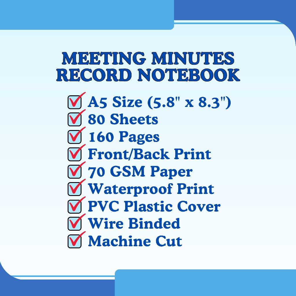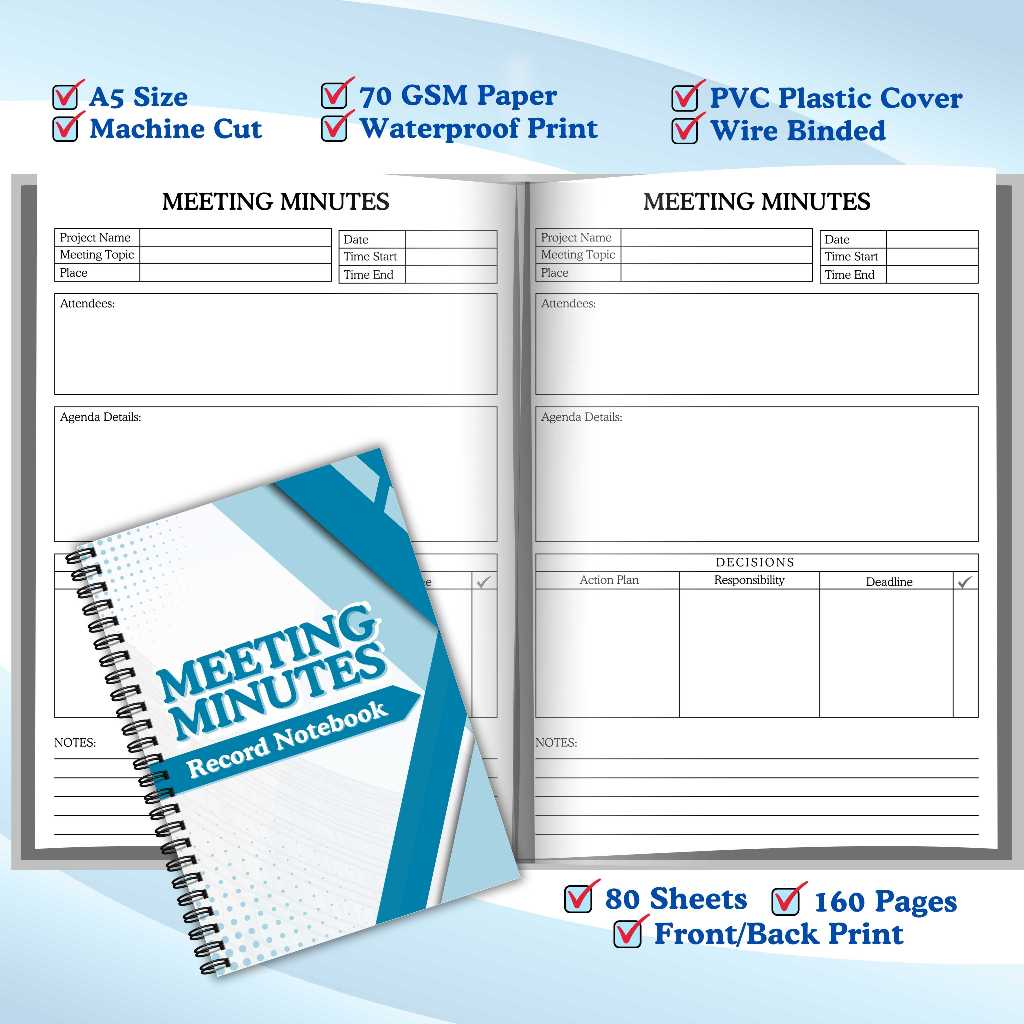 Meeting Minutes Record Notebook or Minutes of Meeting Log Book