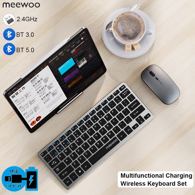 Meewoo Wireless Bluetooth Keyboard and Mouse Set Rechargeable Keyboard for Laptop Tablet Phone Pc