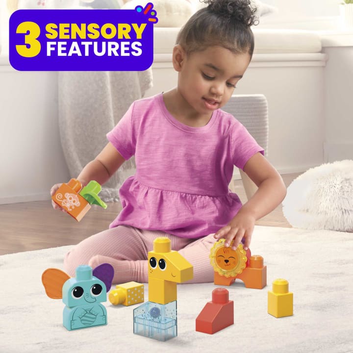 Mega Bloks Rock 'n Rattle Safari Sensory Building Blocks Elephant, Giraffe, and Lion Children Toys