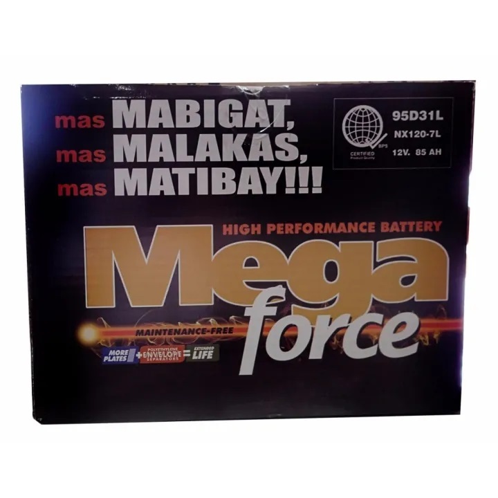 Mega Force 3SMF NX120-7L 95D31L Maintenance Free Car Battery with 18 mos warranty