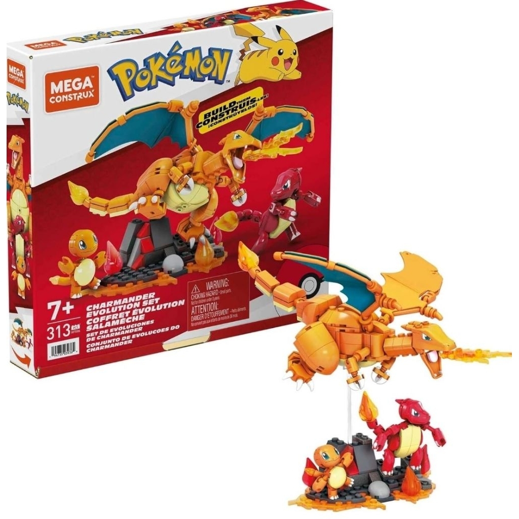 MEGA POKEMON MEGA CONSTRUX CHARIZARD CHARMENDER EVOLUTION BUILDING BOX BUILDING SET WITH 450 COMPATIBLE BRICKS AND PIECES ORIGINAL MATTEL MAGIKARP DISASSEMBLY TOY