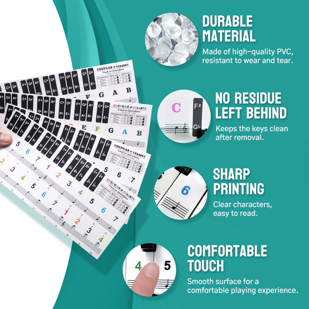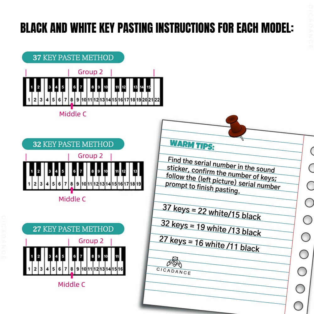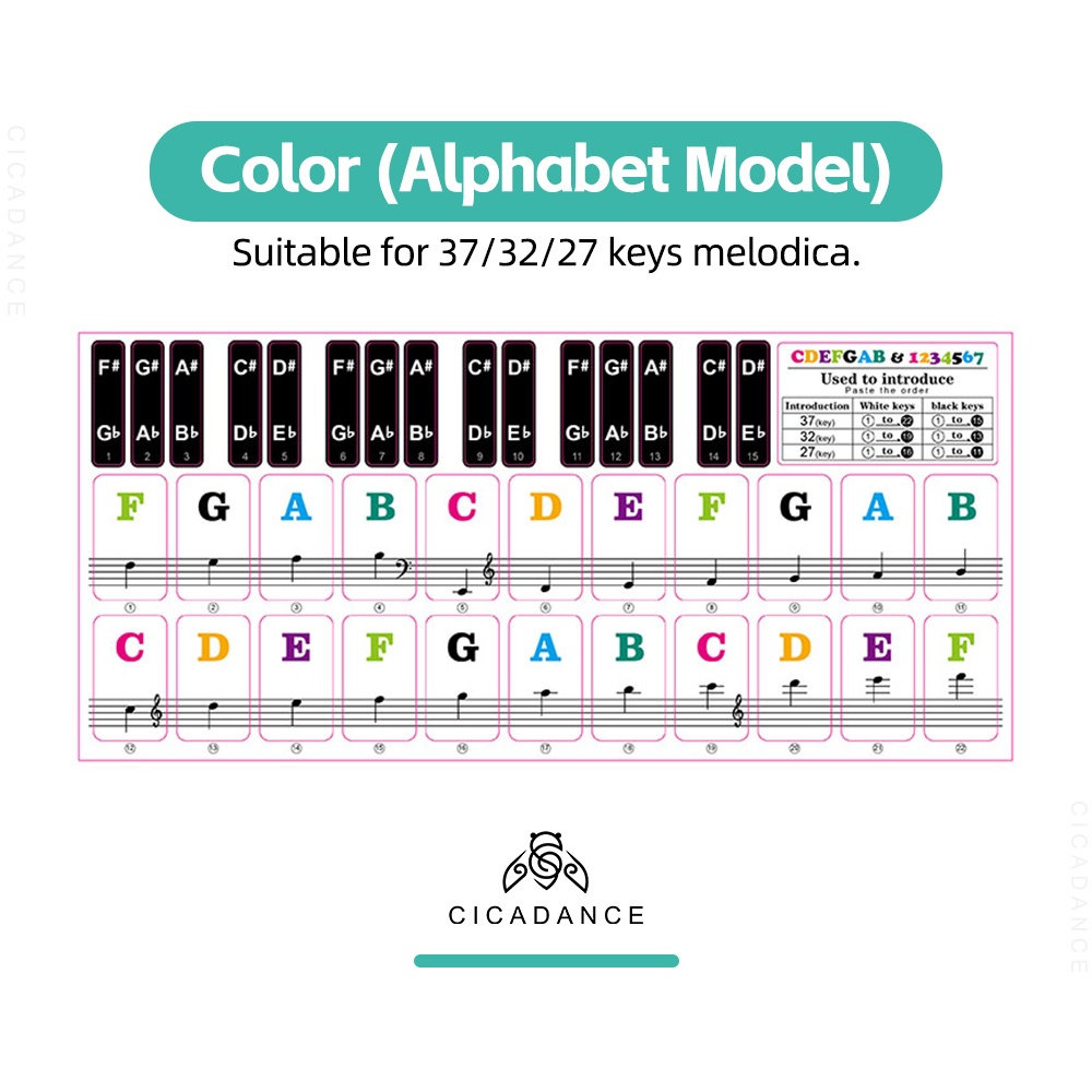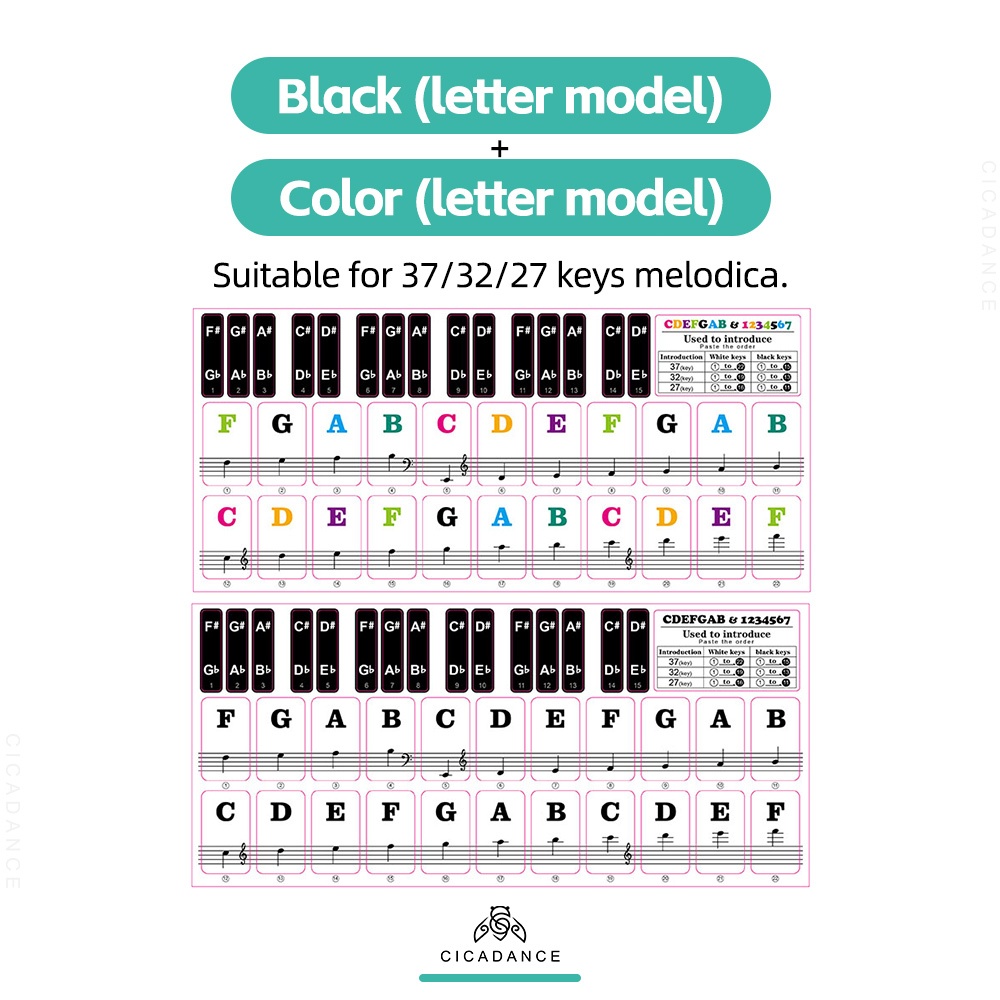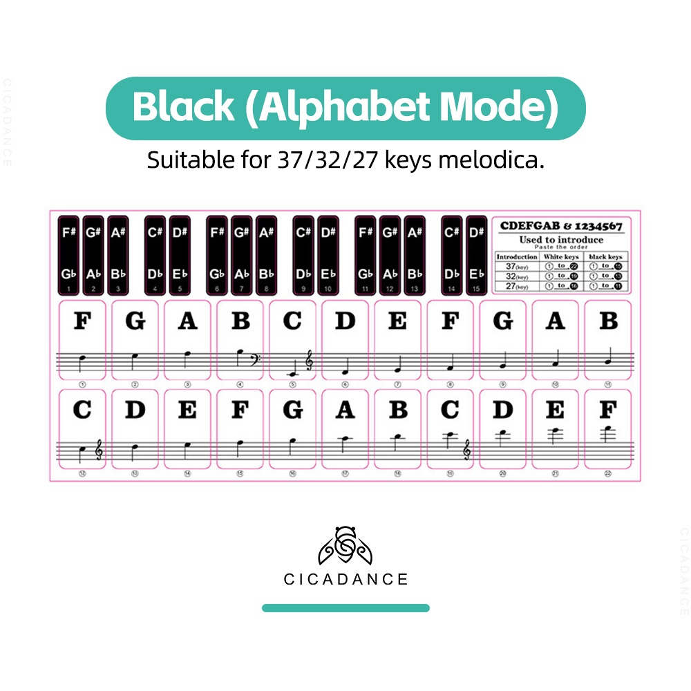 Melodica Keyboard Sticker 37/32/27 Keys PET Transparent Material Recommended for Beginners Melodion Alphabet/Number Stickers Pianica Note Label