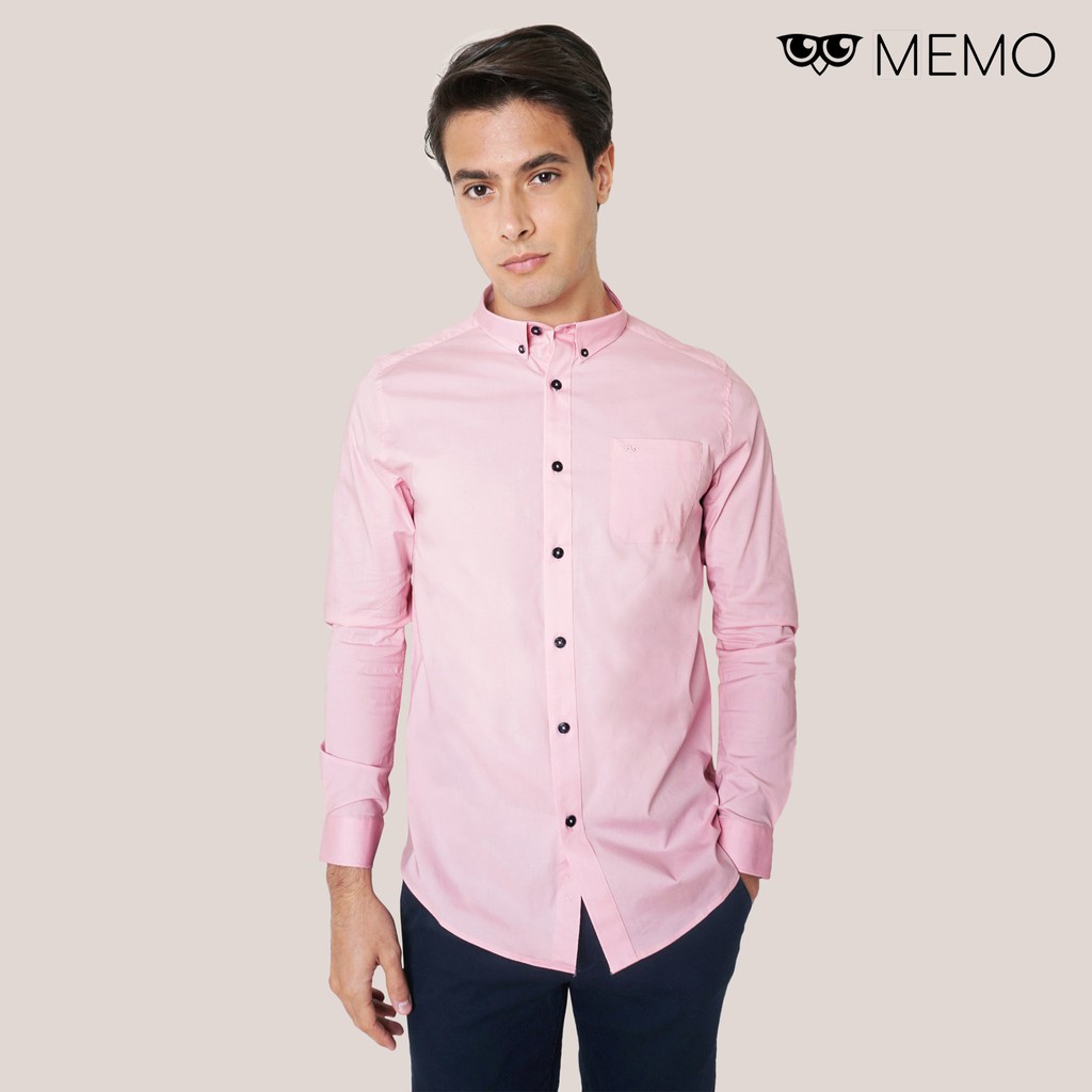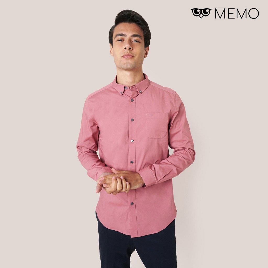 Memo Ultimate Basics Long Sleeves Shirt For Men (Green/Dark Pink/Blush)