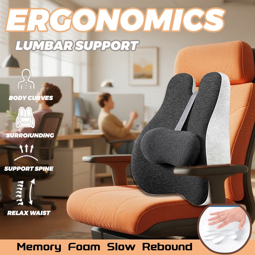 Memory Foam Lumbar Back Support Pillow Waist Adjustable Backrest Cushion Orthopedic Office Chair
