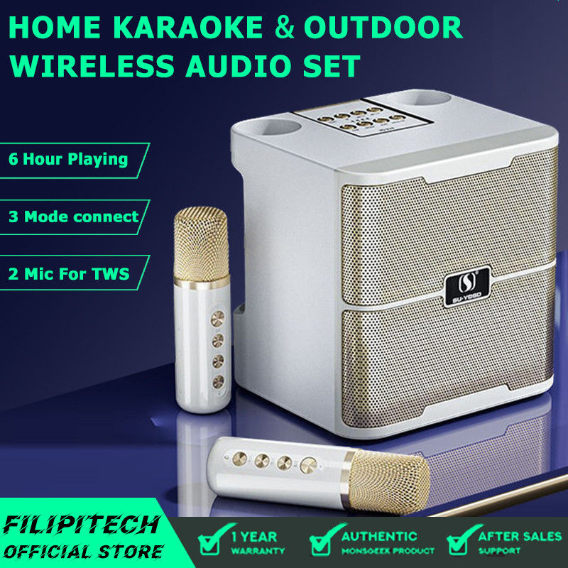 【on hand】Bluetooth Speaker Wireless Bluetooth Dual Microphone Karaoke Speaker 3D Stereo Amplifier