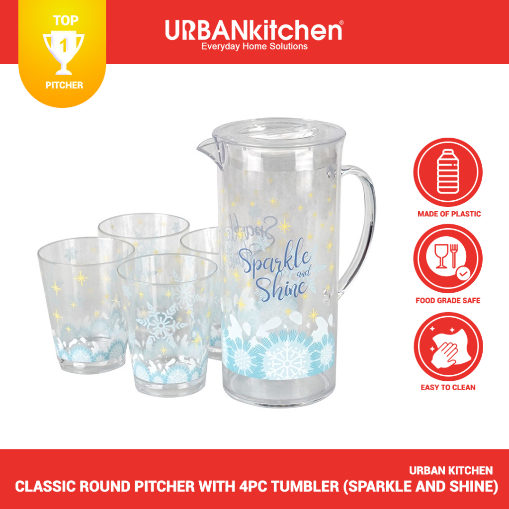 URBAN KITCHEN PS (Polystyrene) Classic Pitcher 1.8L & 4pc Tumbler Set [MJPTSET - SPARKLE & SHINE]