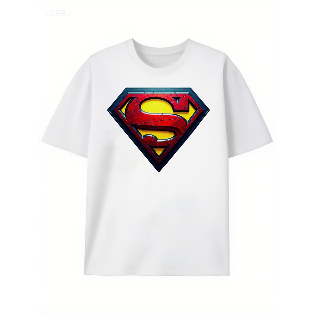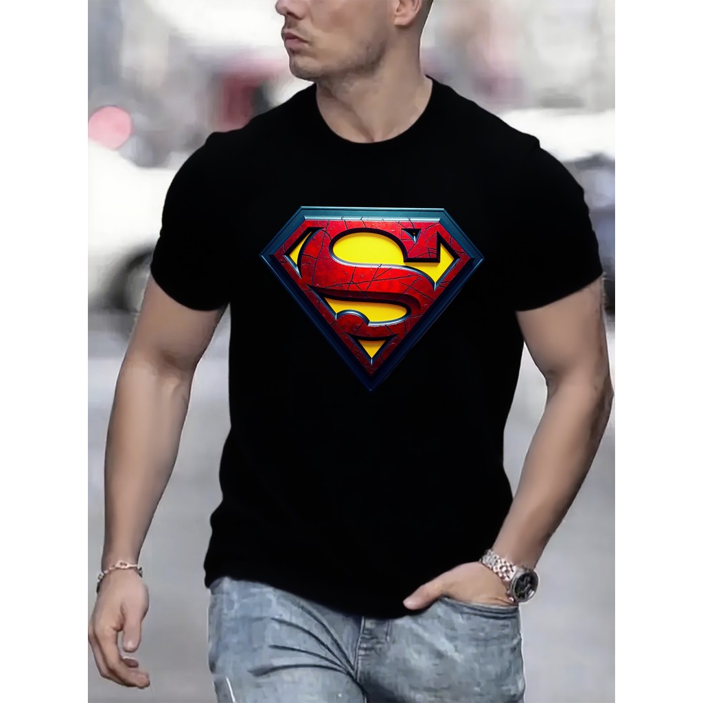 Men'S Justice League Superman Logo Graphic T-Shirt - Red & Yellow Superman Emblem on White & Black,