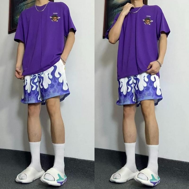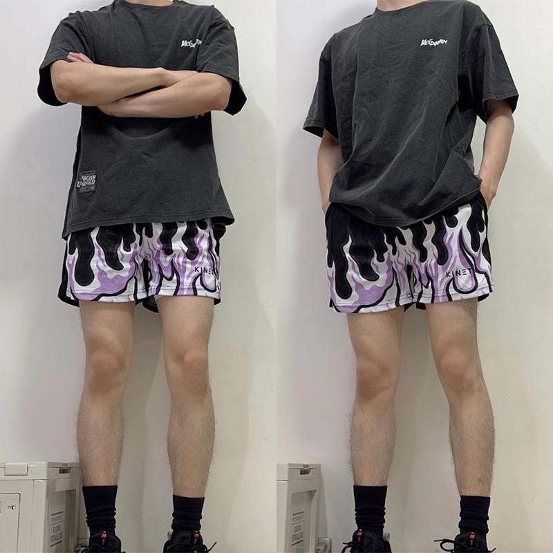 Men's Black Flame Shorts Fire Printed Men short pants Basketball Shorts Style Summer Beach Drift Sport Shorts Blue Purple Black Green