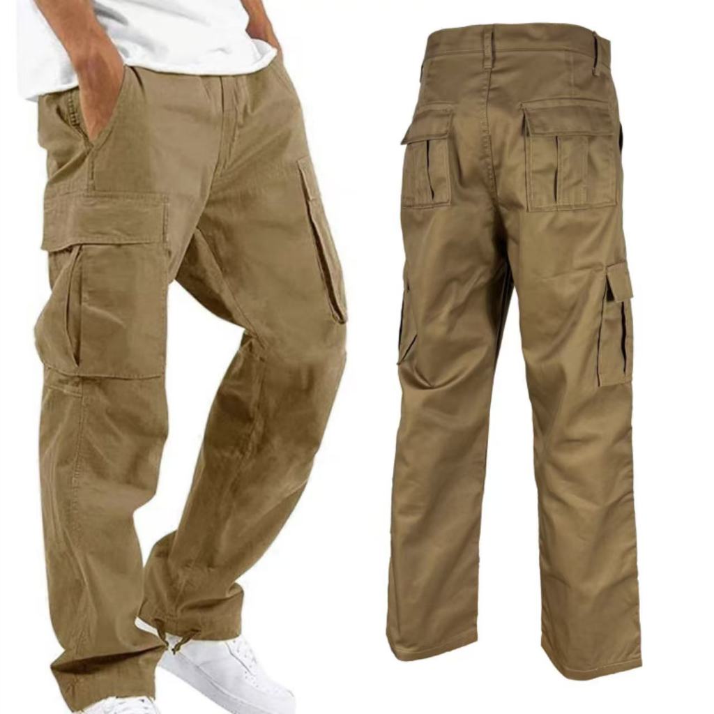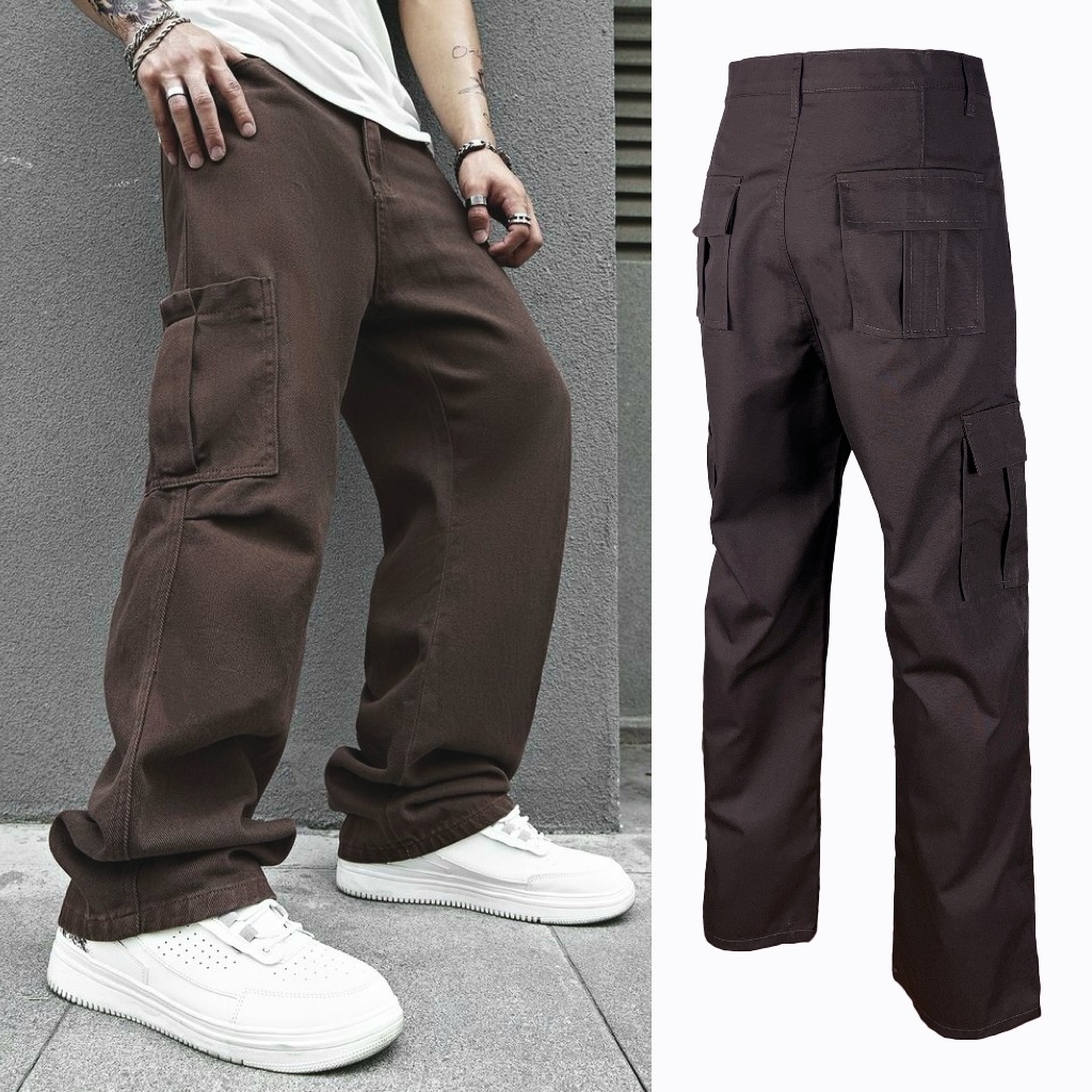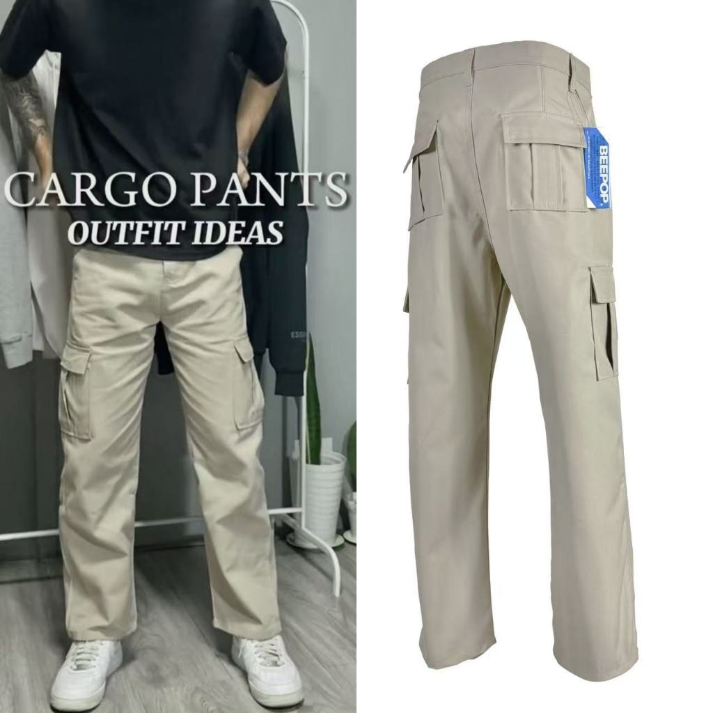 Men's Cargo Pants 6 Pocket Khaki Cargo Wide Leg Pants for Man Korea Kpop Straight Cut