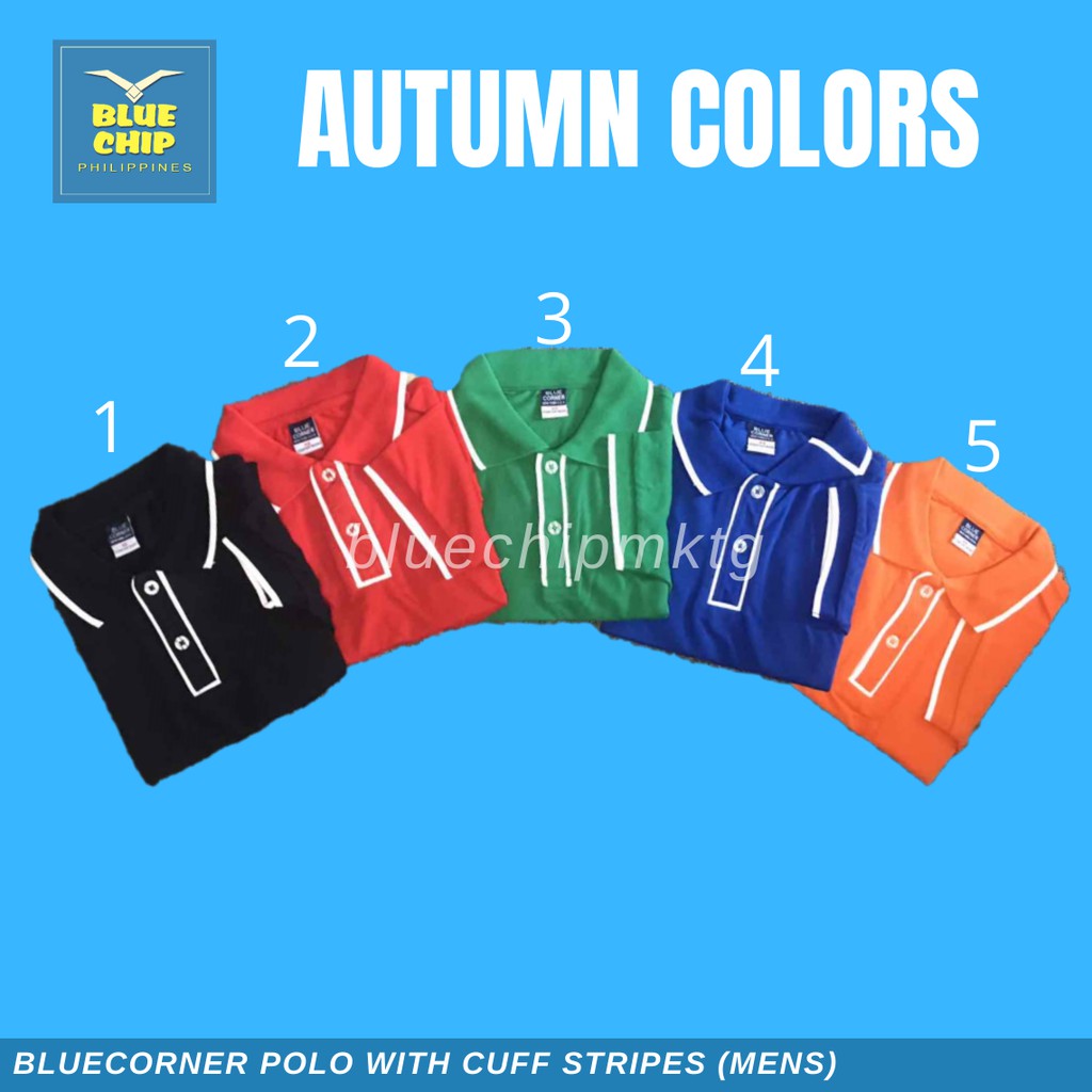 Men's Cotton Blue Corner Polo Shirt w/ Cuff Stripes (Style7) (Black,Red,FGreen,RoyalBlue,Orange)