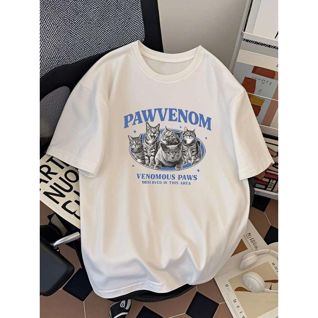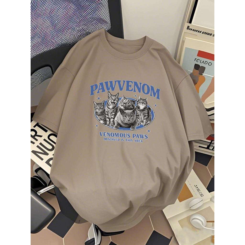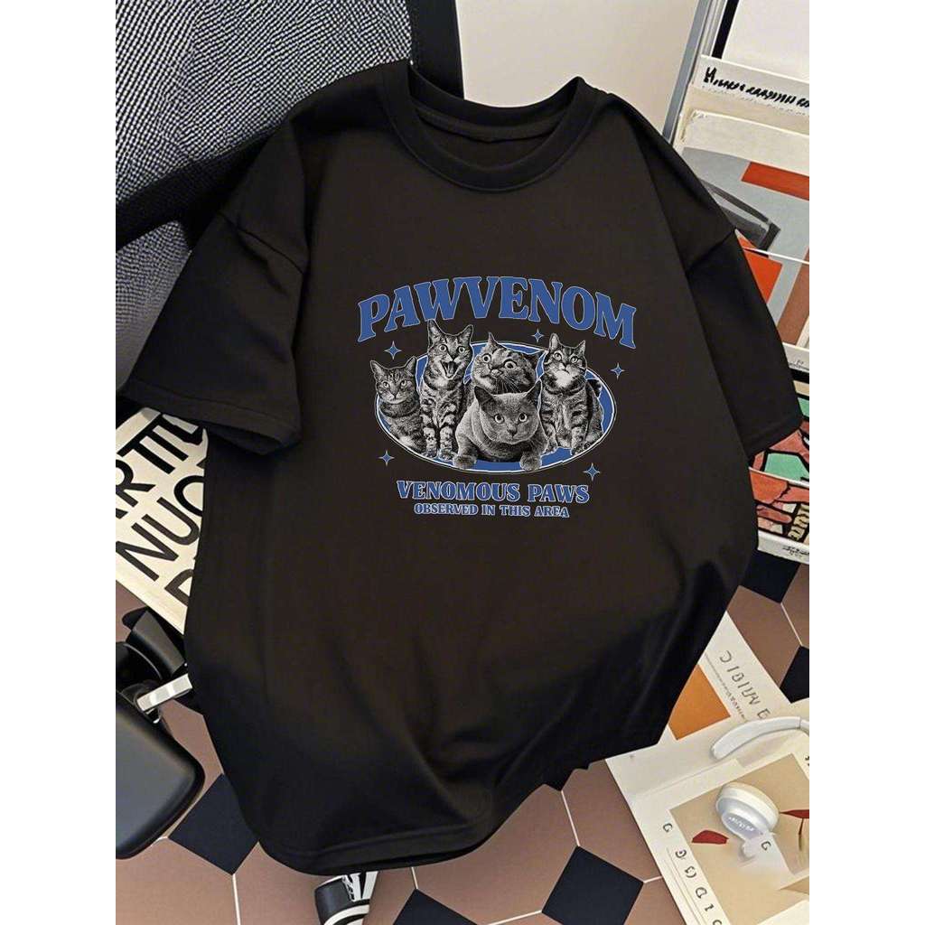 Men's Cotton Casual Short Sleeve T-Shirt-Relaxed Fit Summer Breathable Tee with Cat Graphic Print,D
