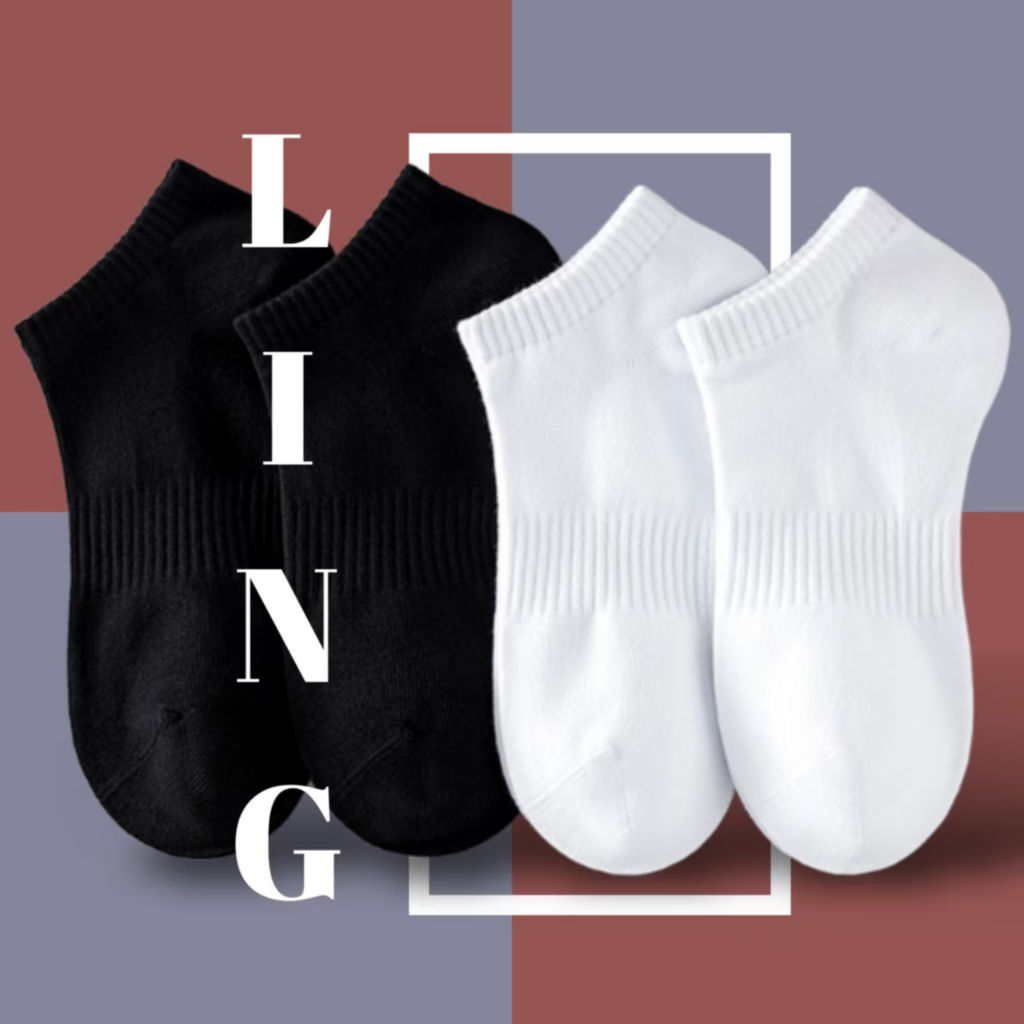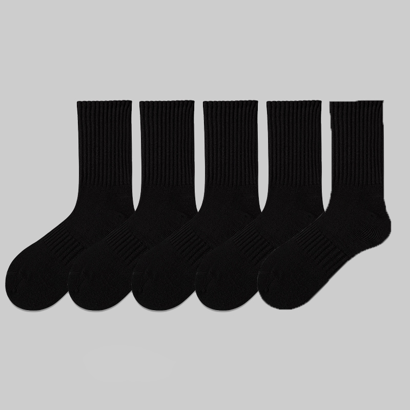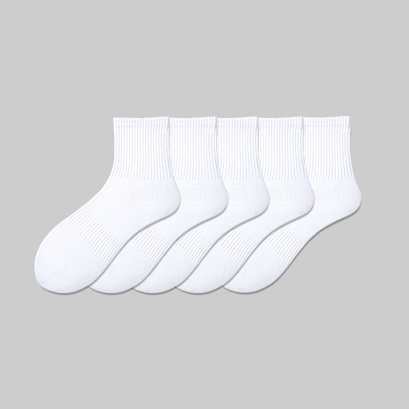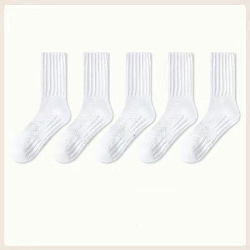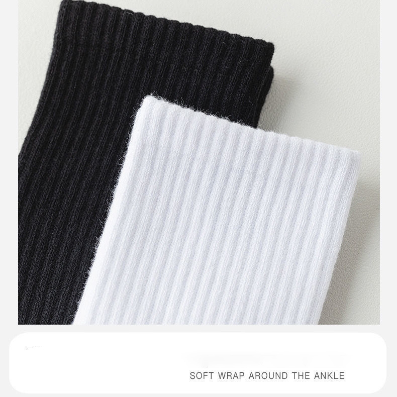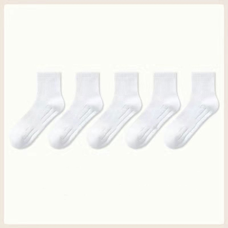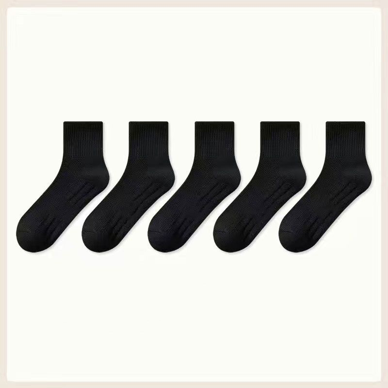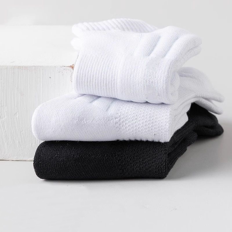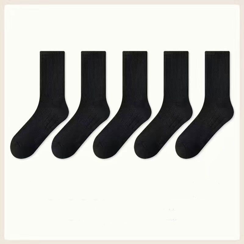 Men's Cotton Socks 5 Pairs | Black/White Gym Basketball Multi-Size Anti-Odor Breathable Medyas