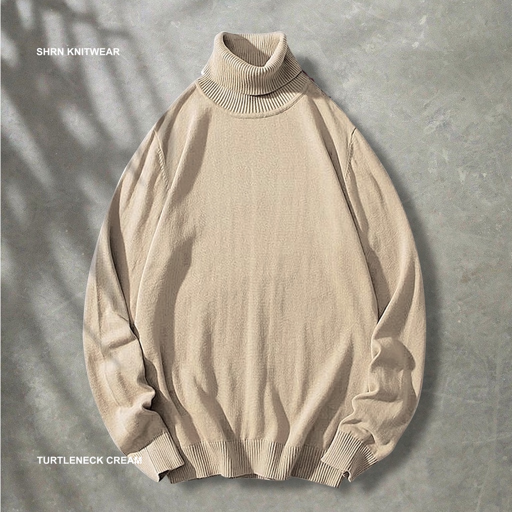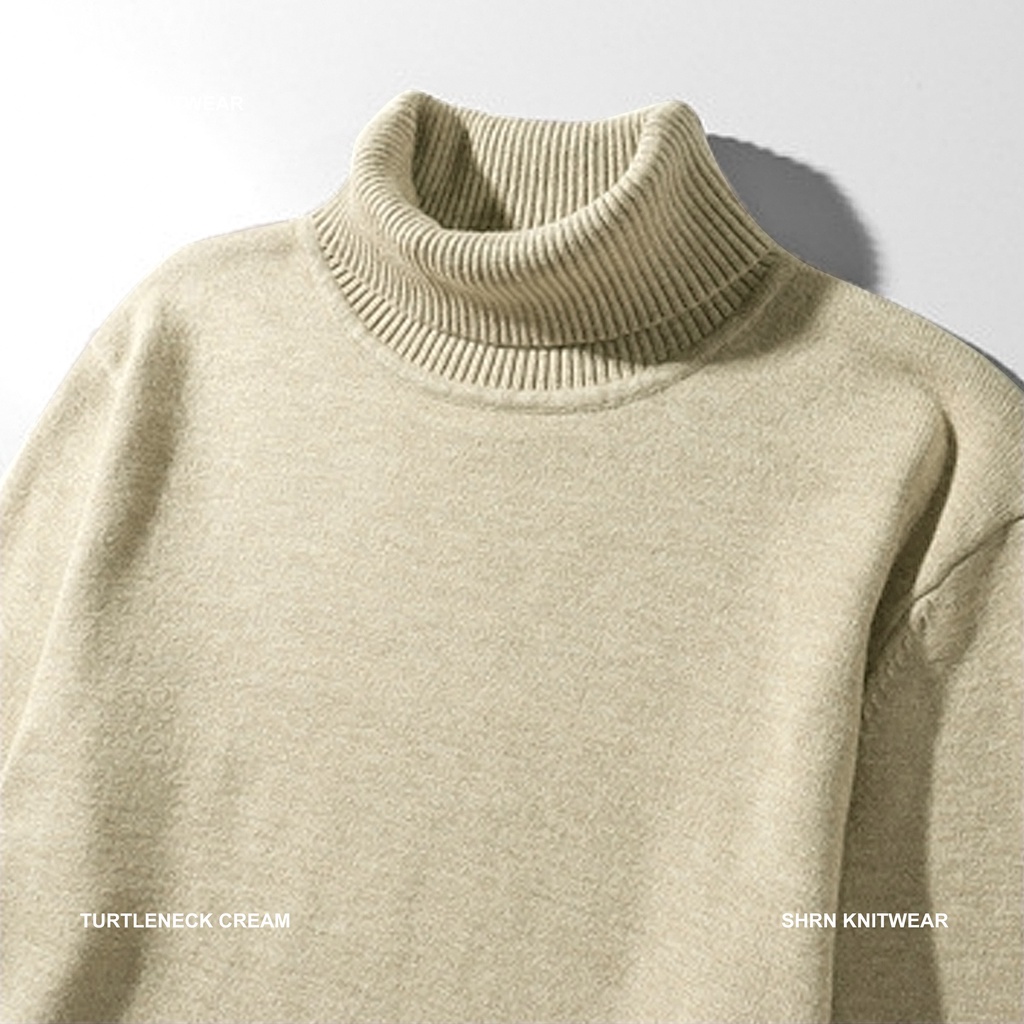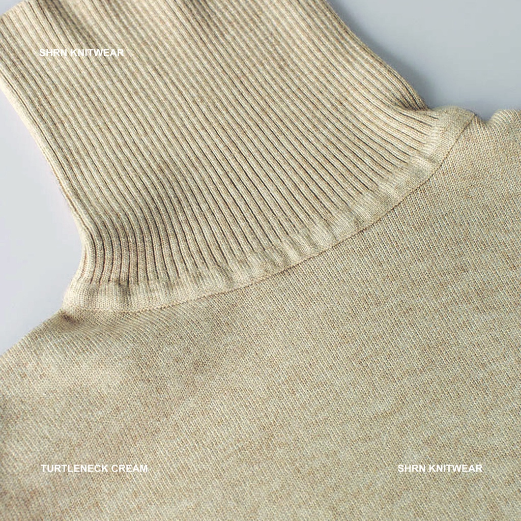 Men's Knitted Sweater Turtleneck High Collar Men's Knitted Sweater Premium Cream Color Long Sleeve