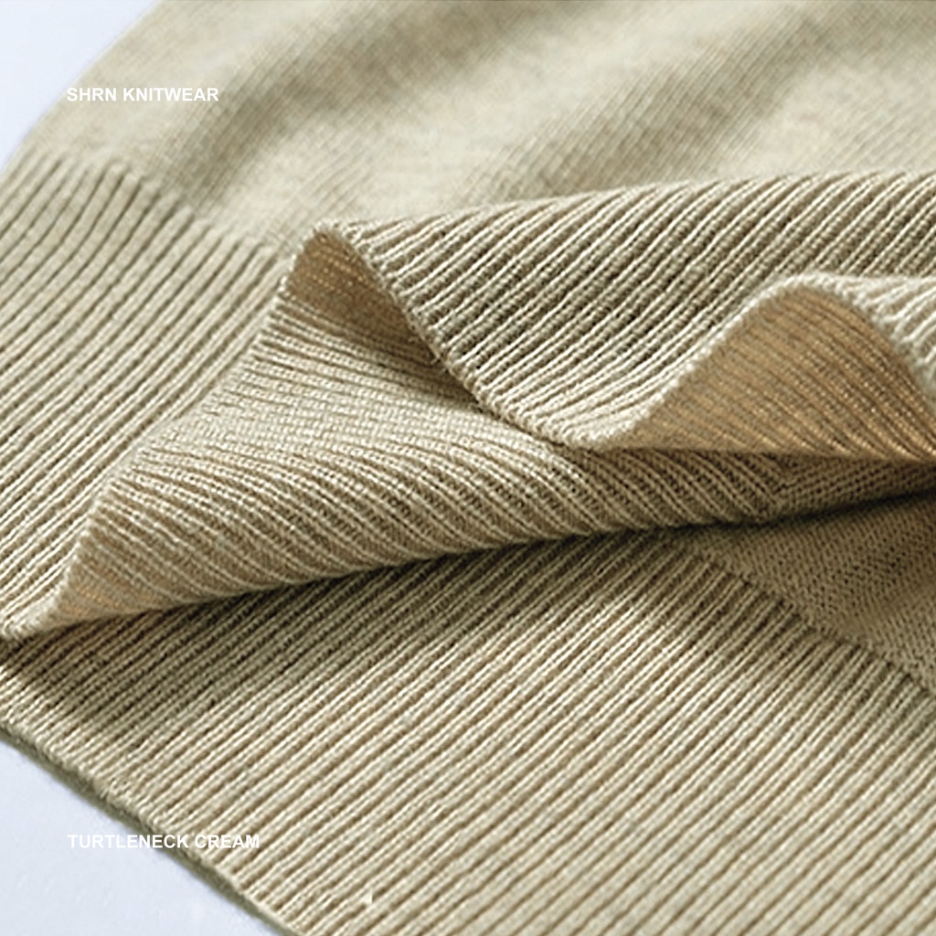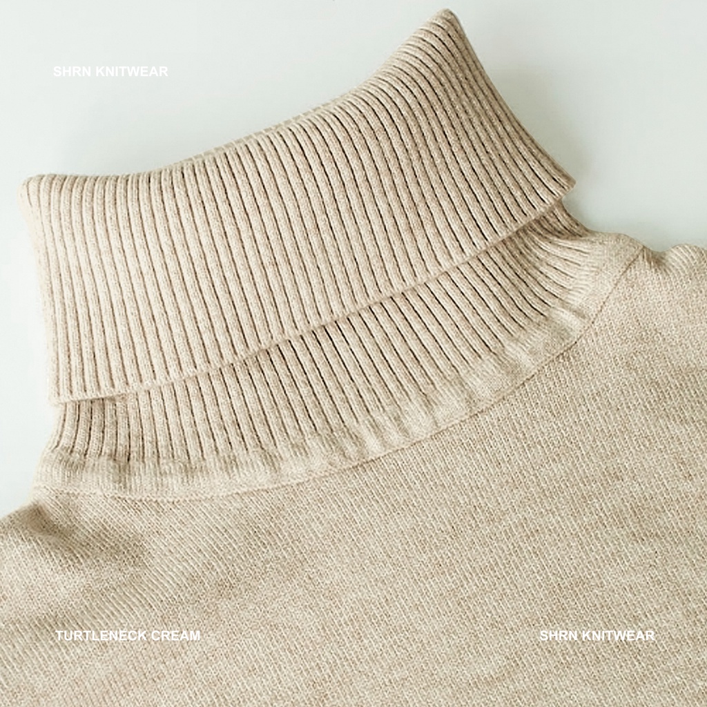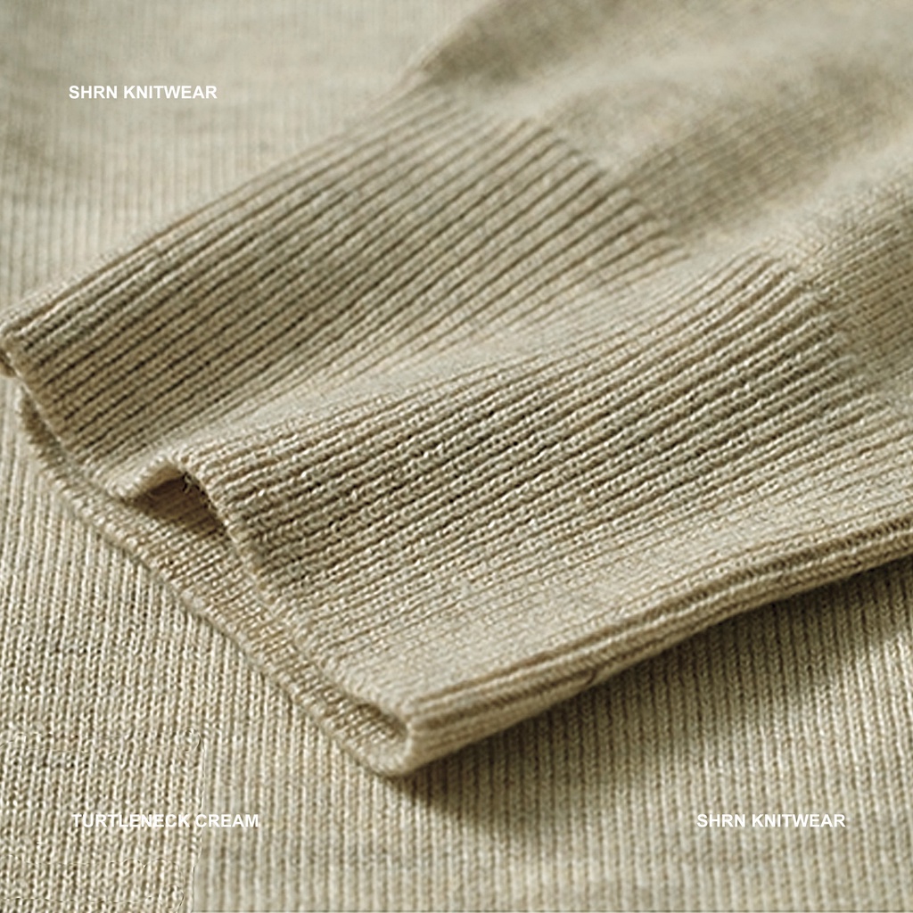Men's Knitted Sweater Turtleneck High Collar Men's Knitted Sweater Premium Cream Color Long Sleeve