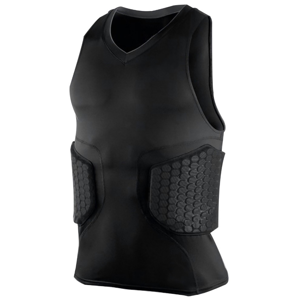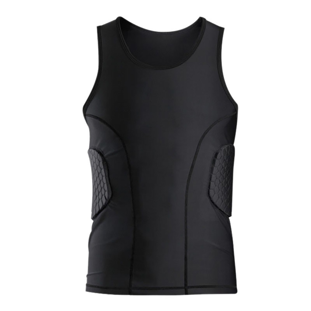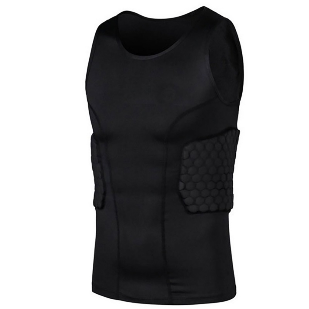 Men's Rib Protector Padded Vest Compression Shirt Training Vest with 3-Pad for Soccer Basketball