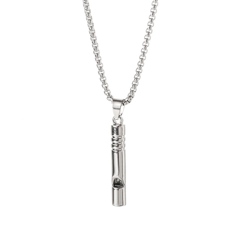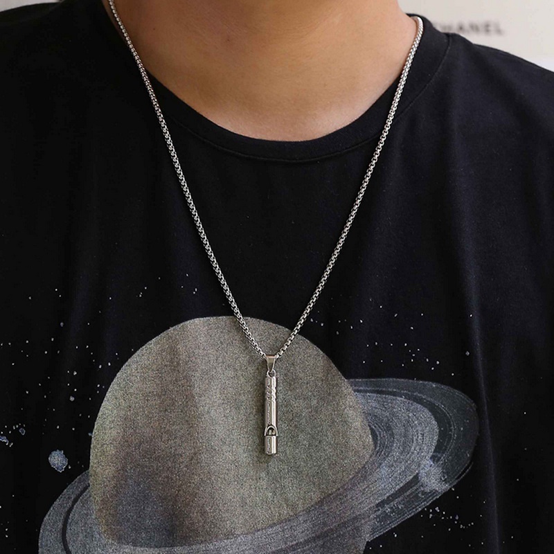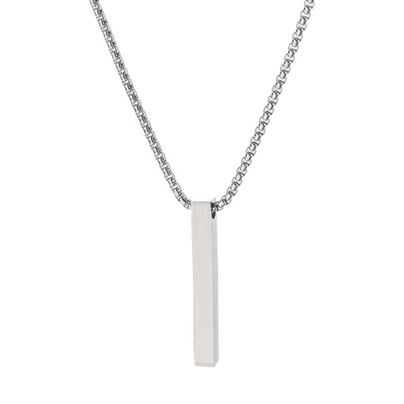 Men's Silver Color Rectangle Pendant NecklaceTrendy Simple Stainless Steel Chain Necklace New Fashion Jewelry for Gifts WC063 #5040
