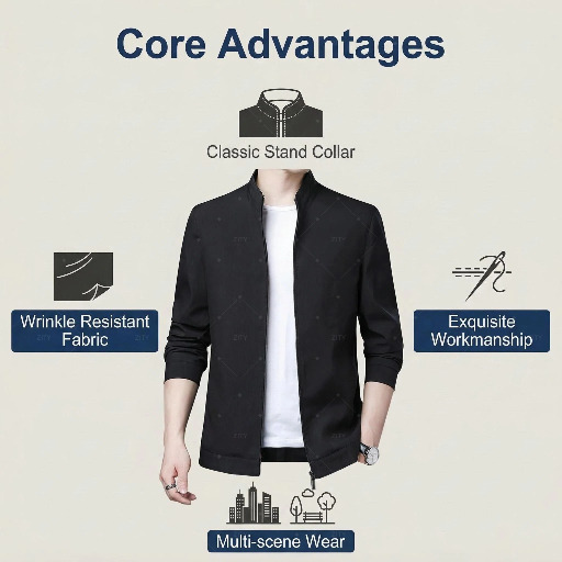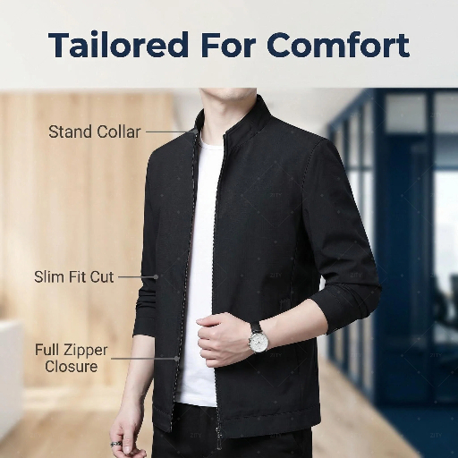 ZITY Men's Slim Formal Business Suit Jacket Men Zip Jacket Men Thin Jacket Men Clothing