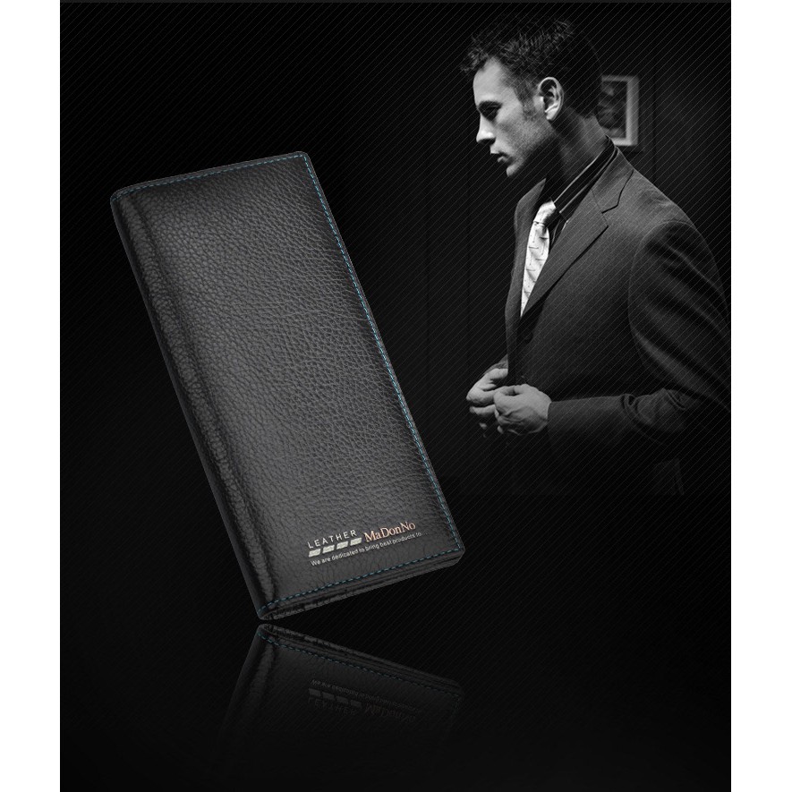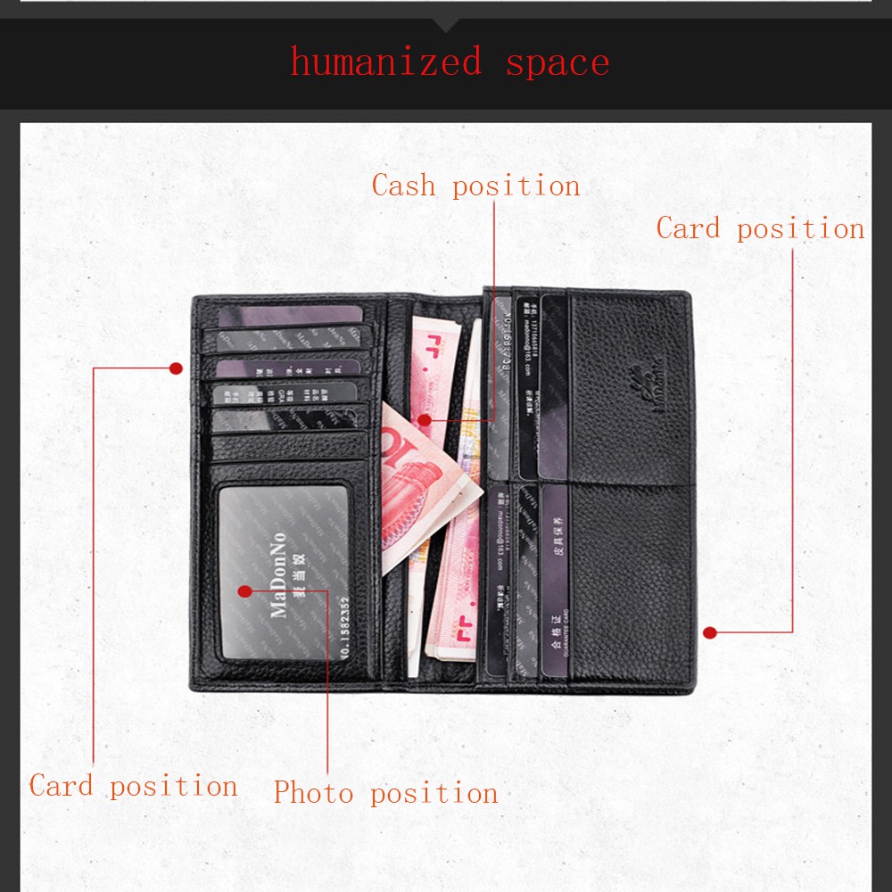 Men's Vintage Genuine Leather Long Wallet for Checkbook, Credit Cards
