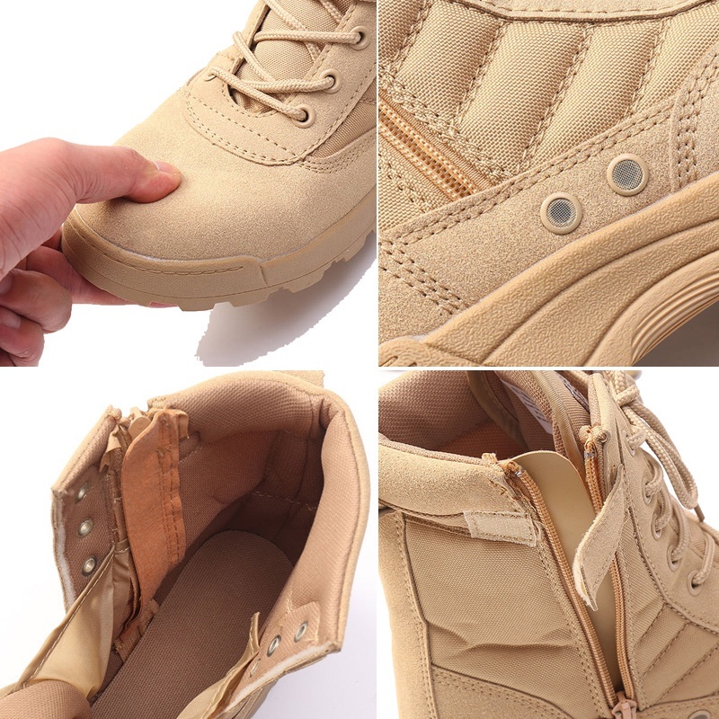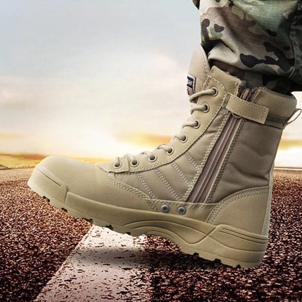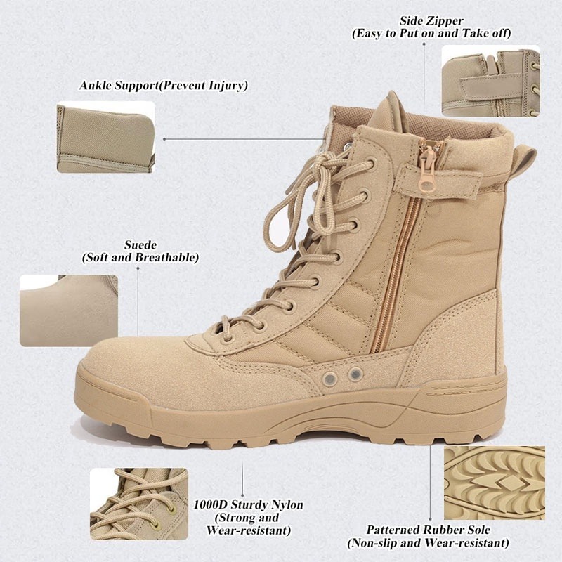 Men's Work Boots With Side Zipper Outdoor Hiking Boots Duty Boots Breathable Desert Jungle Boots