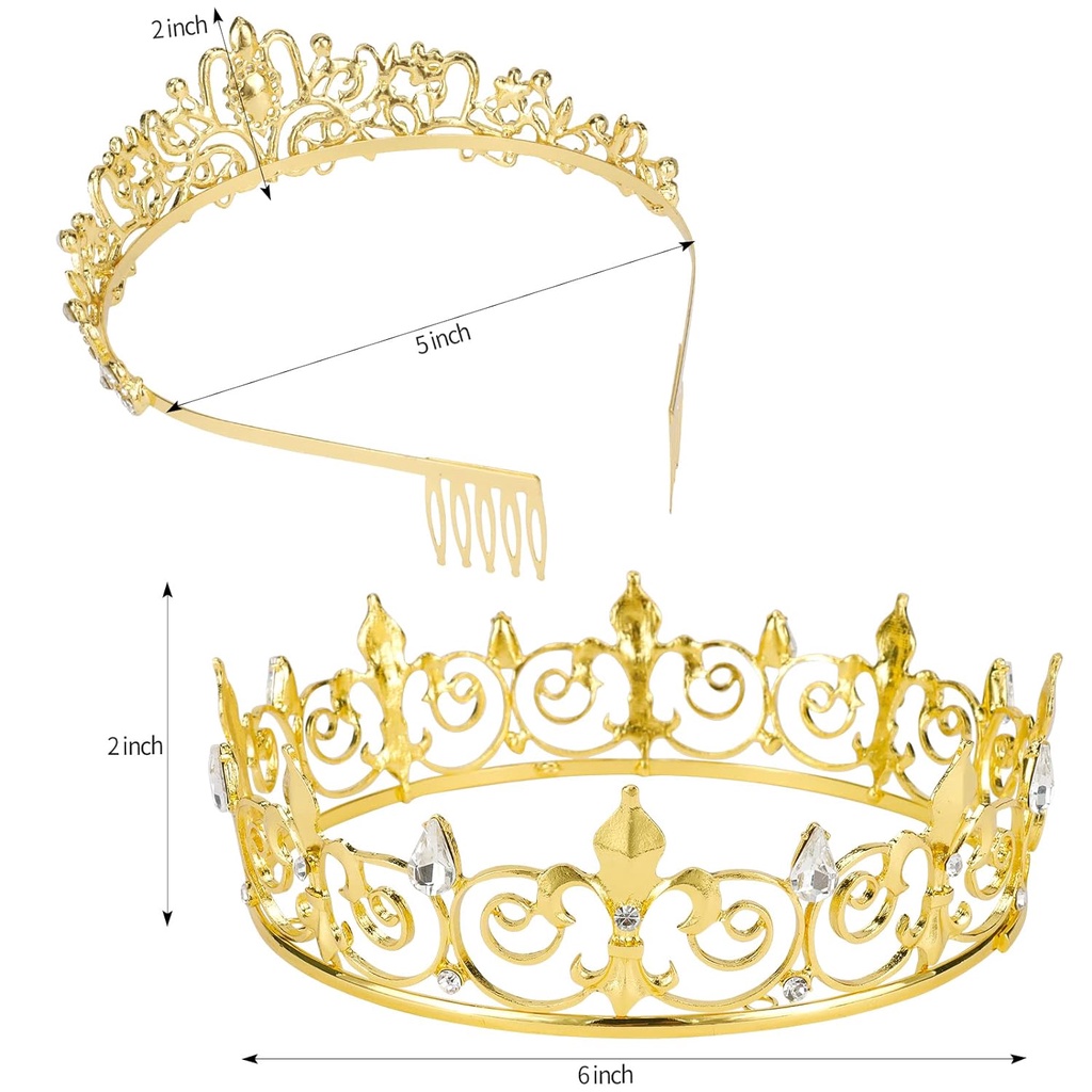 Men's and Women's Crown, Men's Metal Crown, Women's Crown Crown, Golden Prince Crown Princess Tiara, Medieval Costume Accessories for Prom Wedding Halloween