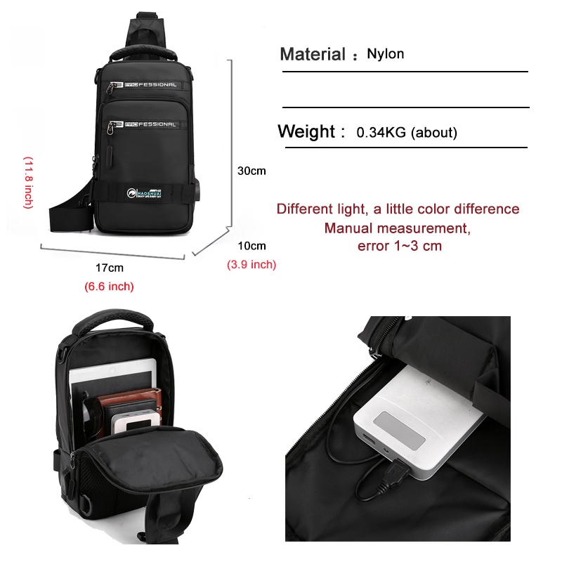 Men Anti-Theft Messenger Bag Waterproof Messenger Bag with USB Port Shoulder Bag