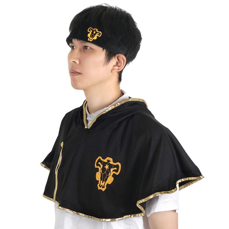 Men Black Cloak Asta Cosplay Cape Hooded Cloak Black Bull Headband Cape Anime Cloak Halloween Party Costume(With Headband)