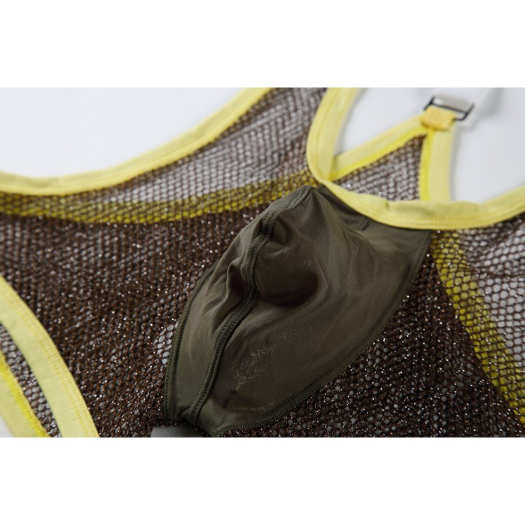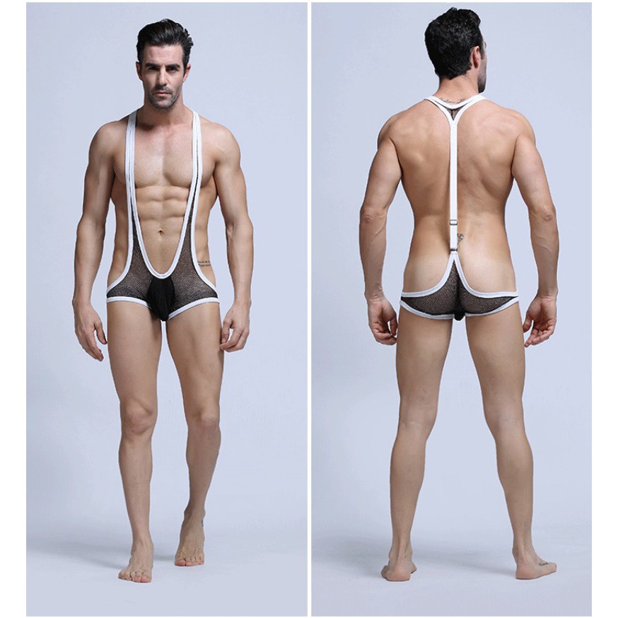 Men Bodysuit Mankini Mesh Transparent Underwear