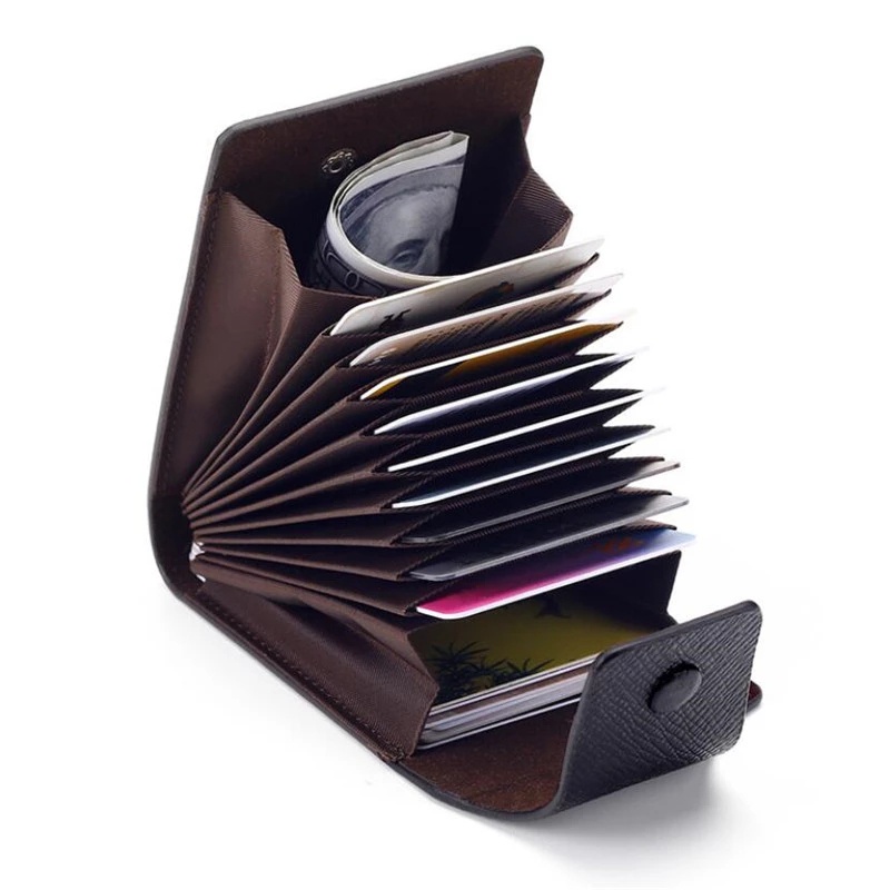 Men Fashion Business Leather Credit Card Walllet With Snap Button/ Unisex Large Capacity Multi Card Holder Coin Purse / ID Card Holder Pocket Organizer